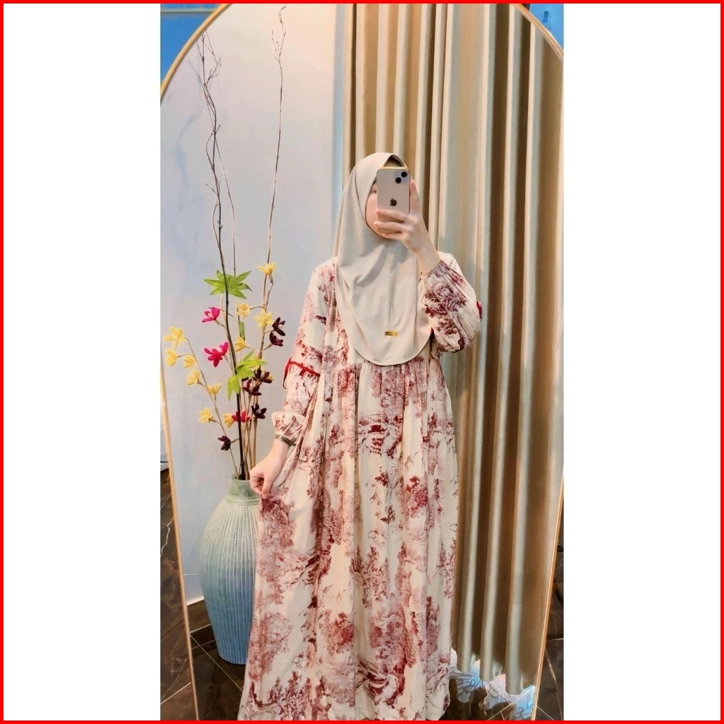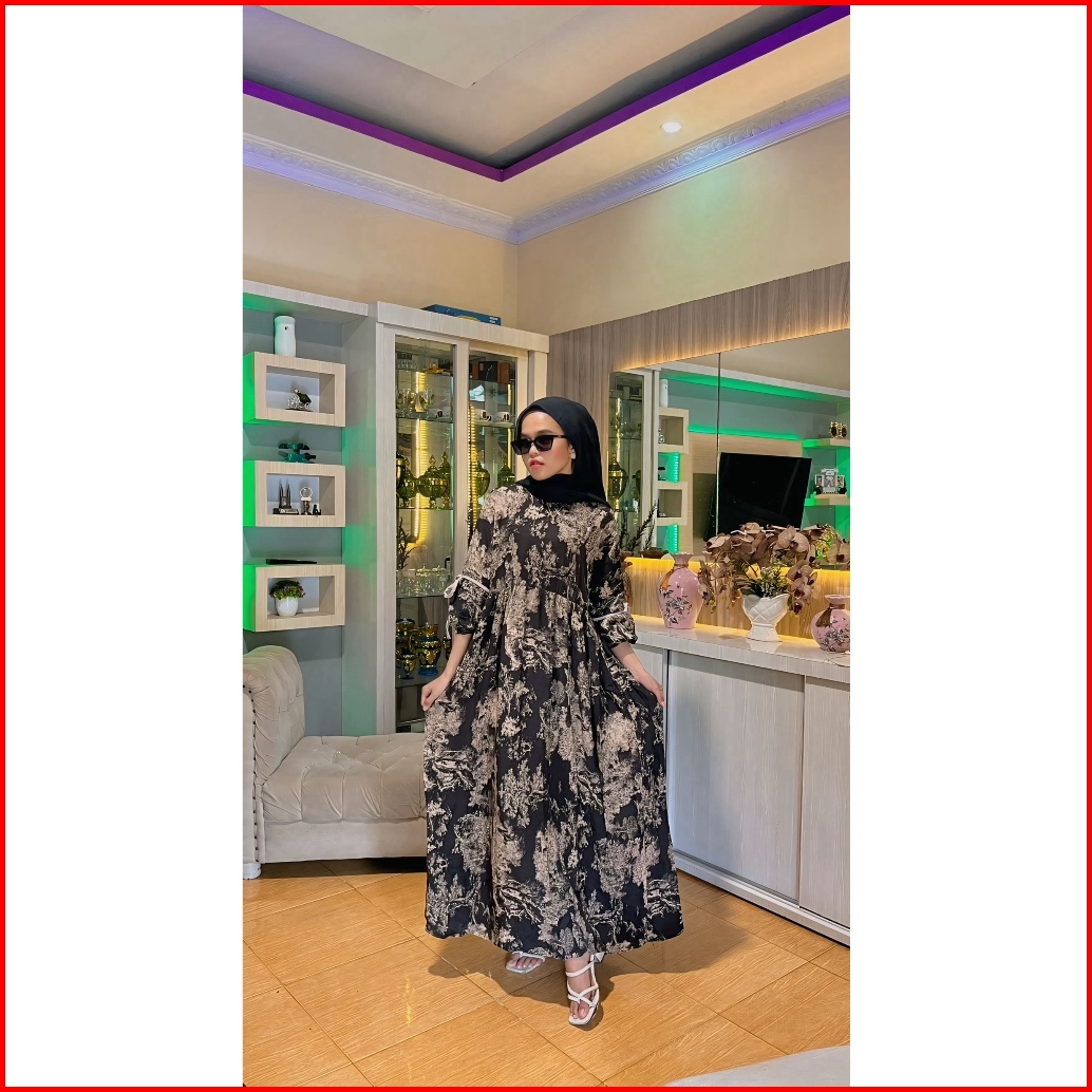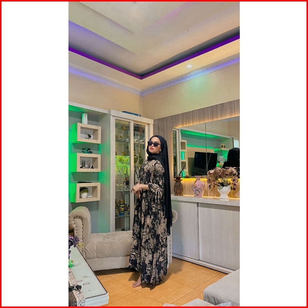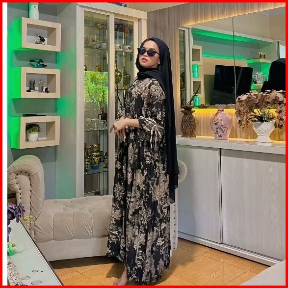 Dress Anjani Midi Dress Rayon Premium Motif Bunga Terbaru Gamis Midi Pita Busui Friendly