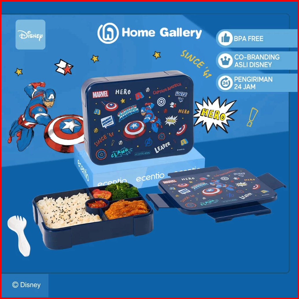 Ecentiokids Disney Fit Lunch Box 4 Grid Set Anak Anti Tumpah Tempat Makan Marvel Captain America Elsa Lucu Bpa Free Send