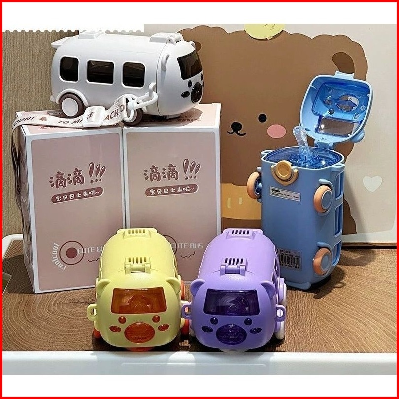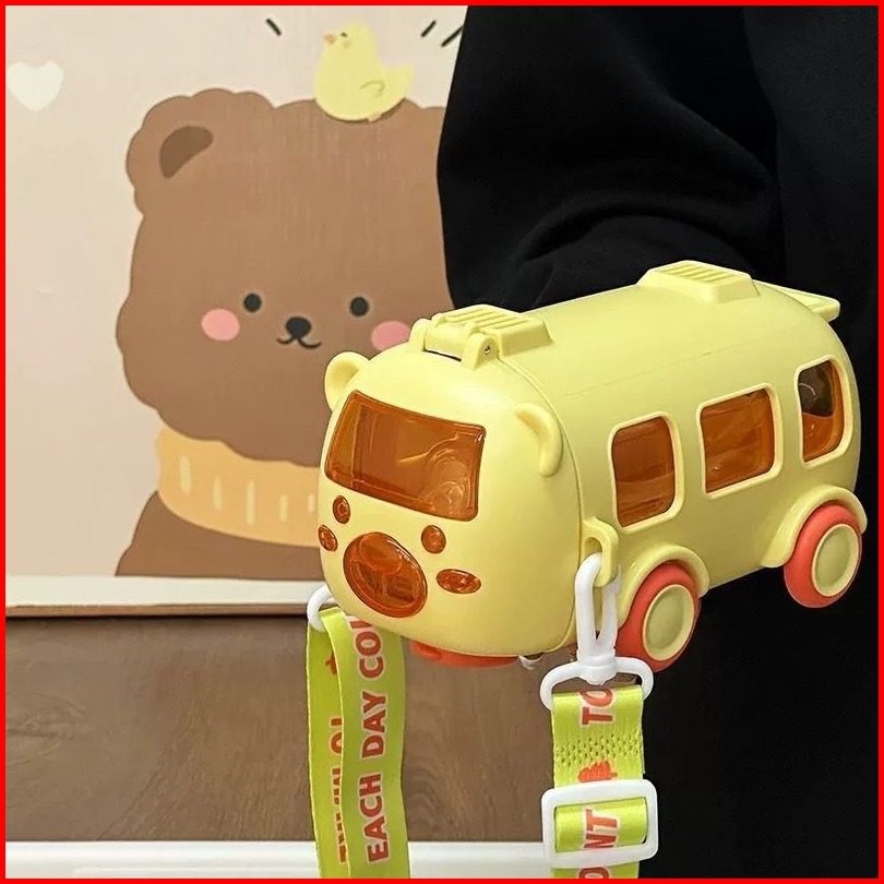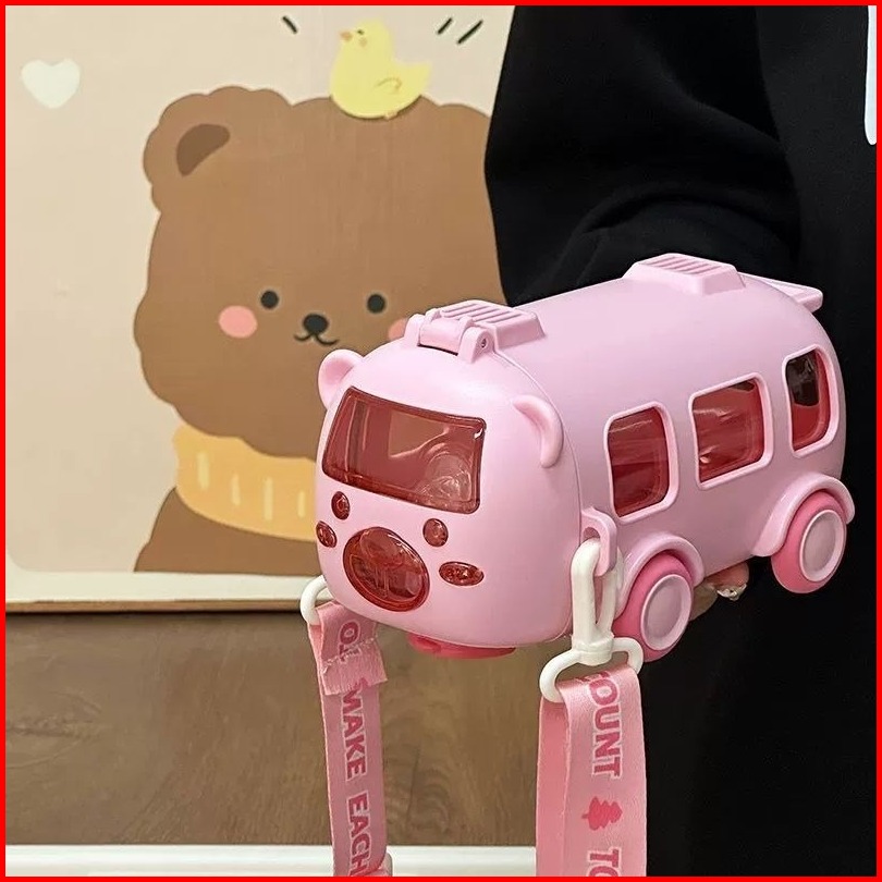 Botol Minum Anak Karakter Bus Lucu Sedotan Tali Panjang Viral Plastik