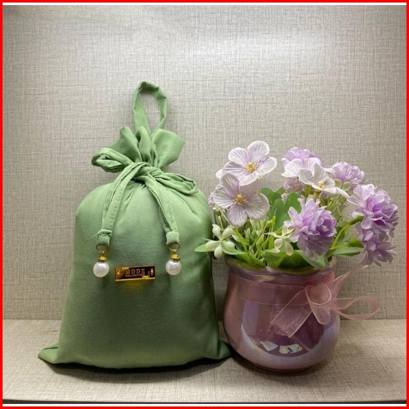 Mode - Mukena Dewasa Lite Travelling Katun Premium Polos Mini Pouch 2in1 Resleting