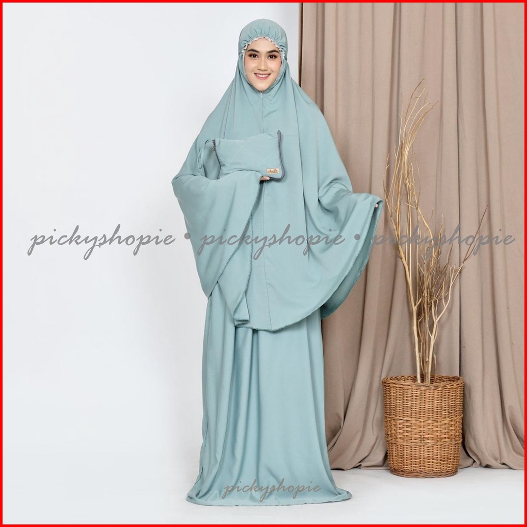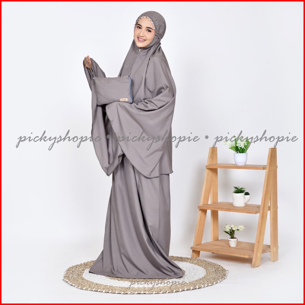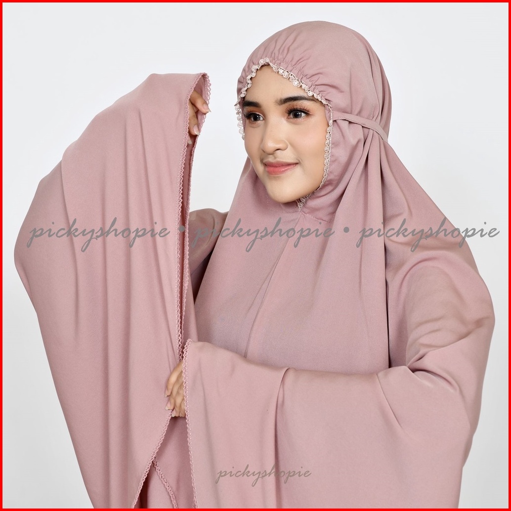 Mukenah Travel Dewasa Aksen Renda Piqot Traveling Nyaman Bahan Adem