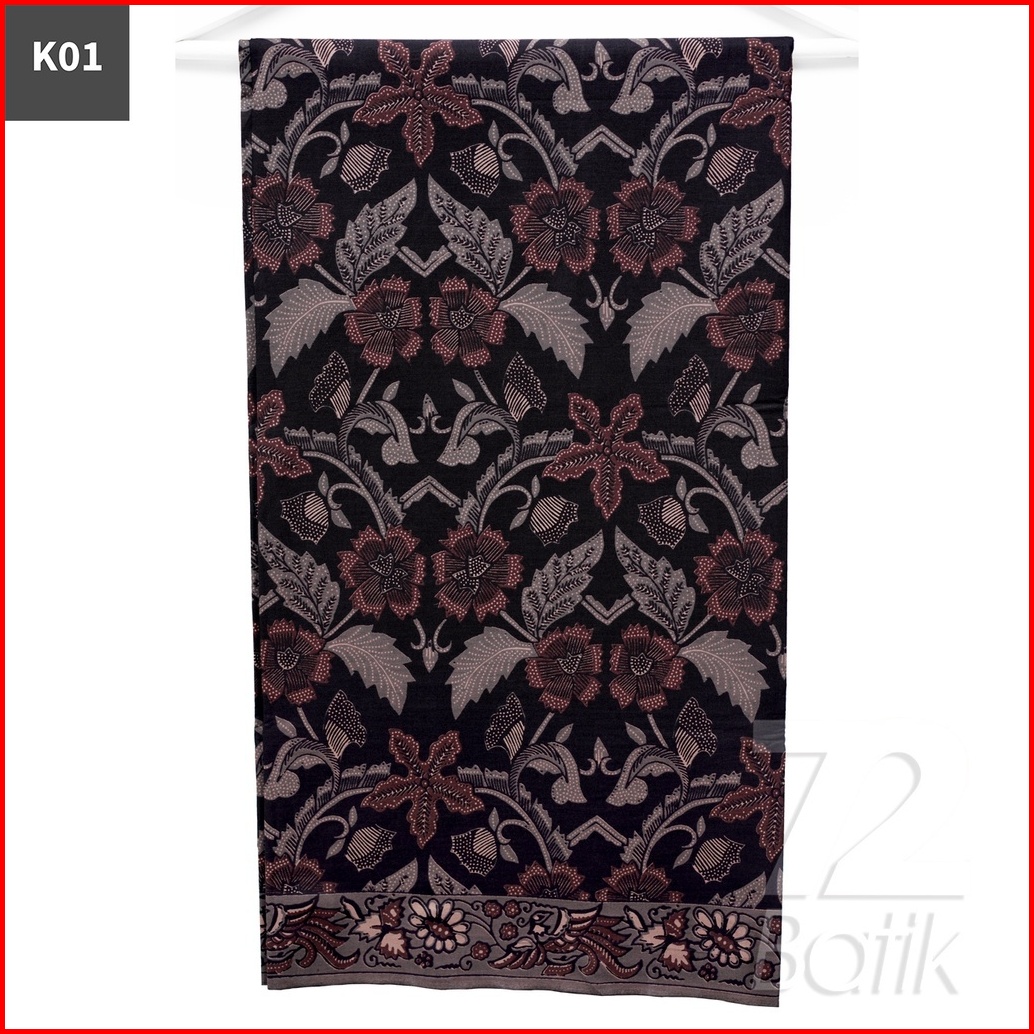 Kain Batik Premium Bahan Katun Motif Kembang Singkong Warna Hitam Earthy Brown Mocha Mousse 722050 Cap 72 Jarik Jarit Sa