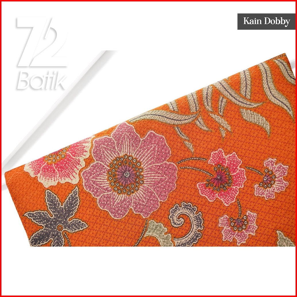Kain Batik Premium Dobby Motif Kembang Palem Warna Orange Terakota 723524 Cap 72 Jarik Jarit Samping Kebat Panjang Batik