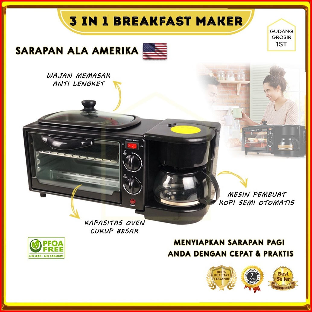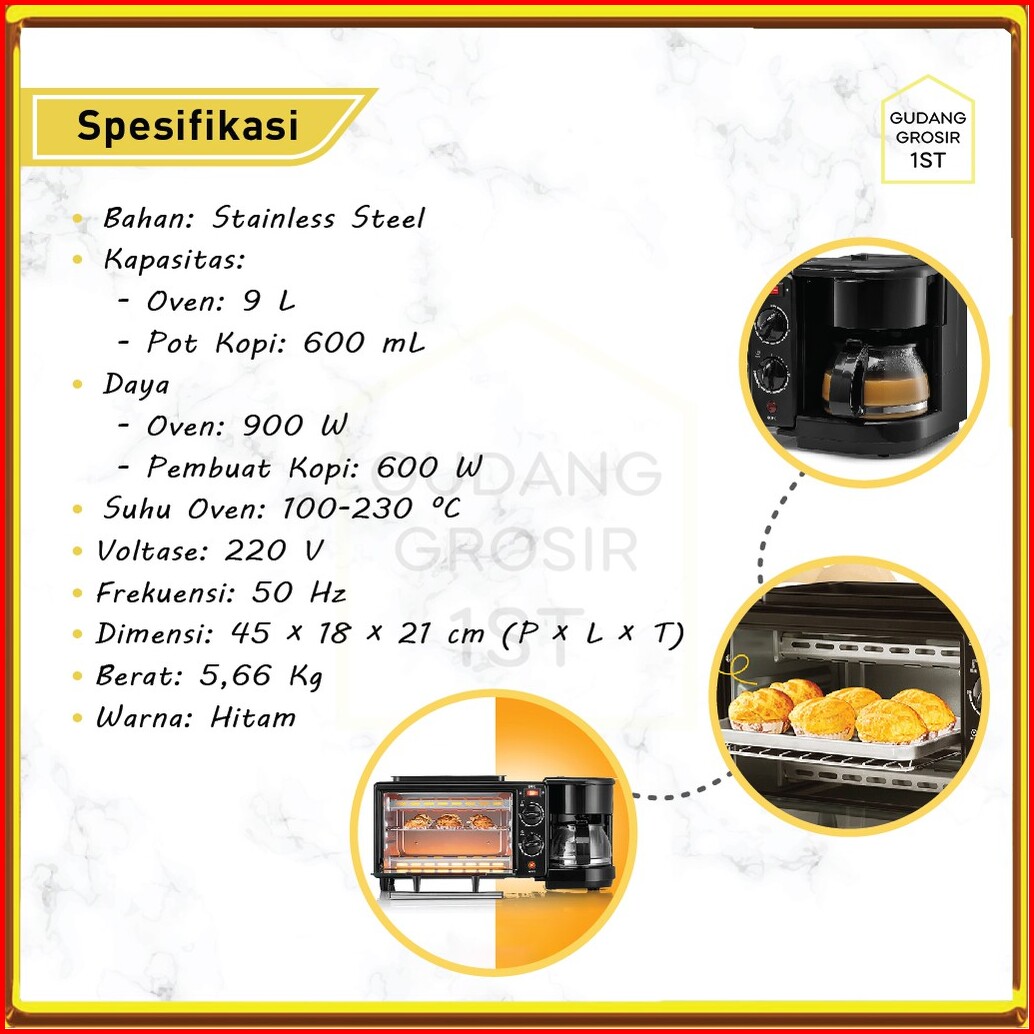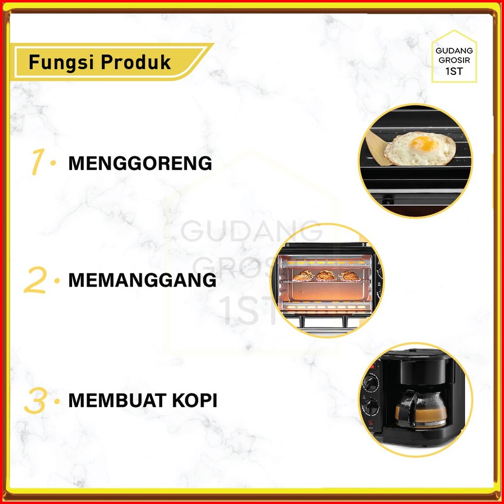 3 In 1 Microwave Oven Listrik Low Watt Pemanggang Roti Mikrowave Breakfast Maker Oven Multifungsi