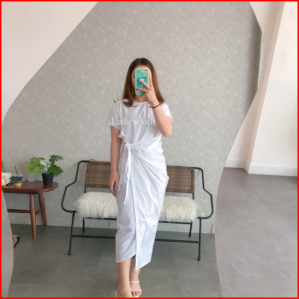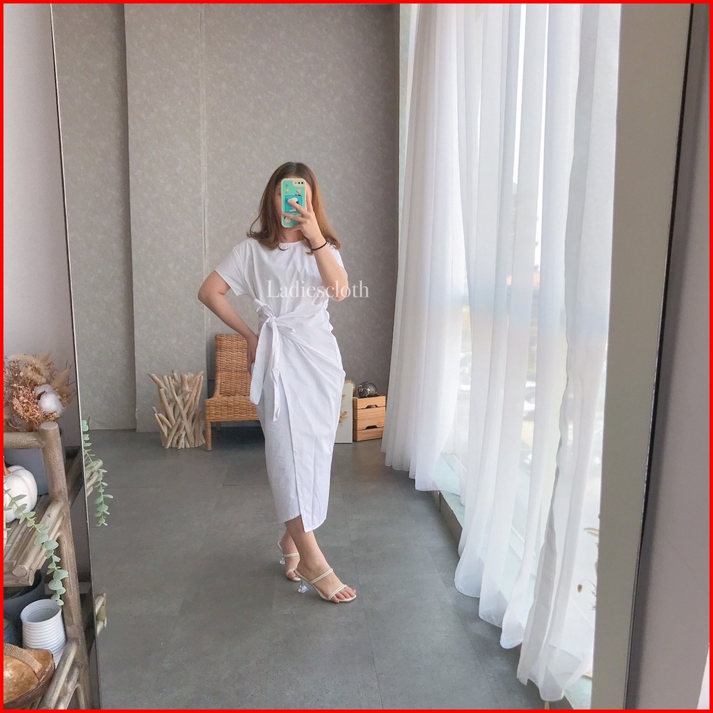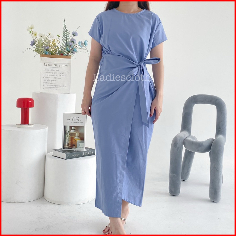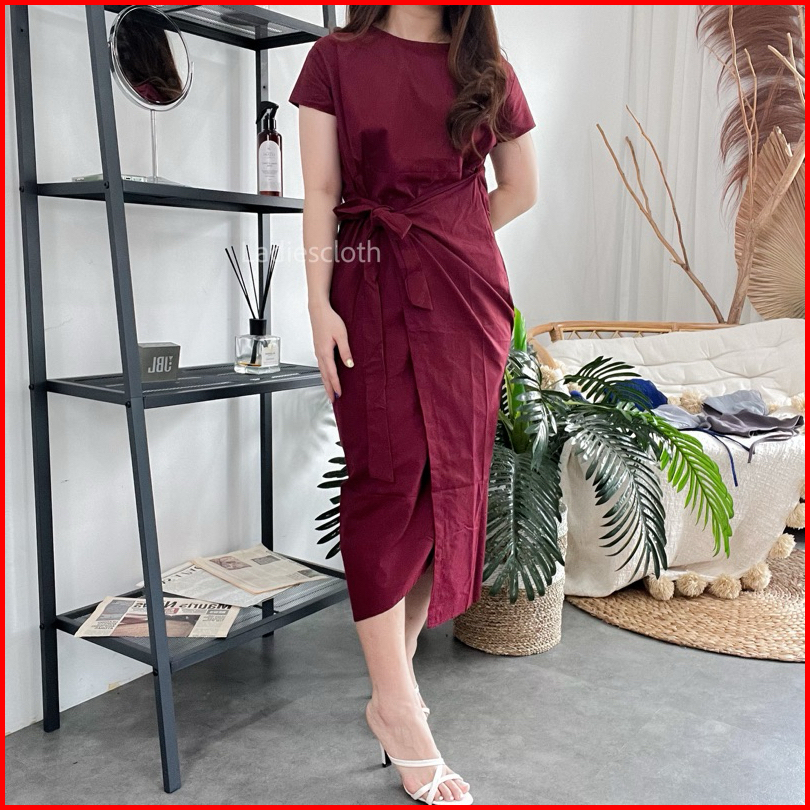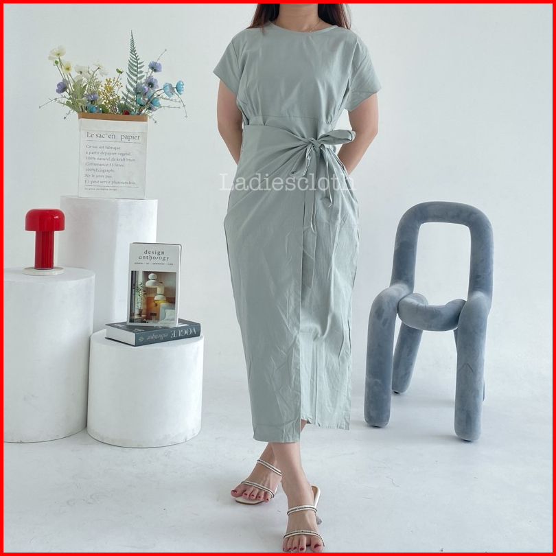Ladiescloth Casual Dress Wanita Bahan Katun Model Rok Lilit Wrap Skirt Tied Dress Simple Cocok Di Pakai Buat Kondangan A