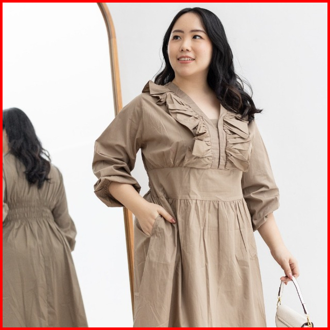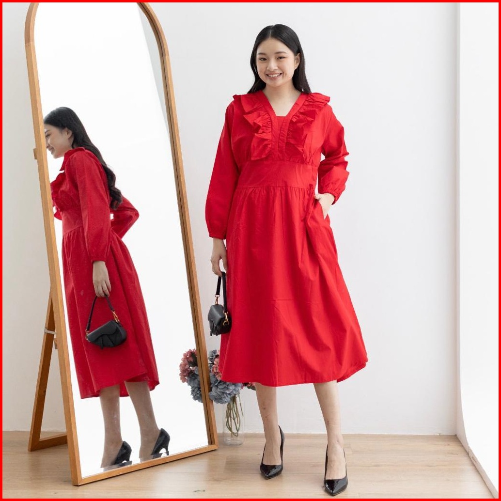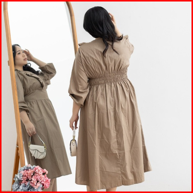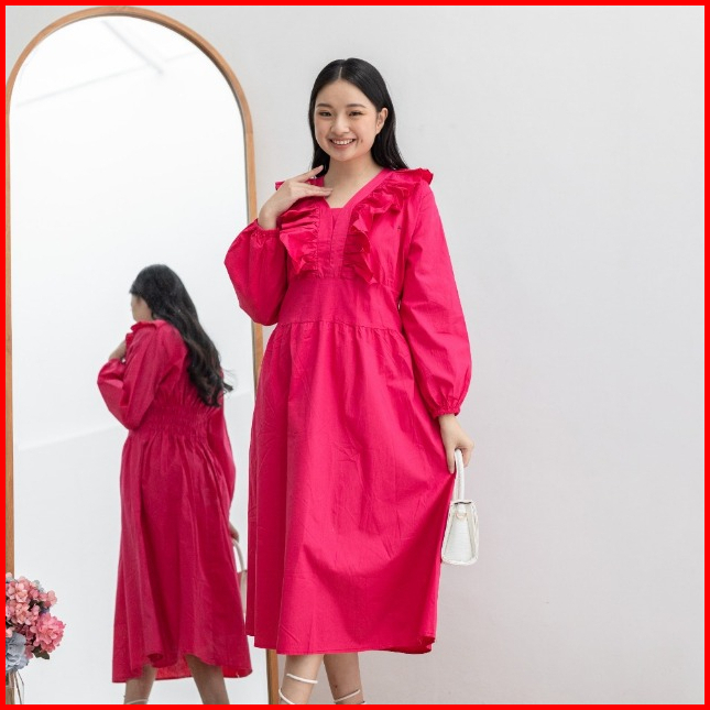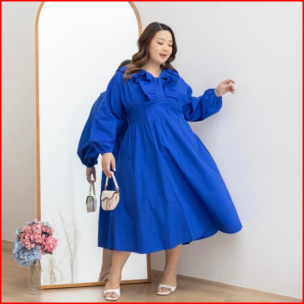 Eclaire - Hera Dress Normal Grande Big Size Dress Katun Wanita Casual Korea Lengan Panjang S-l Xl-xxl Jumbo