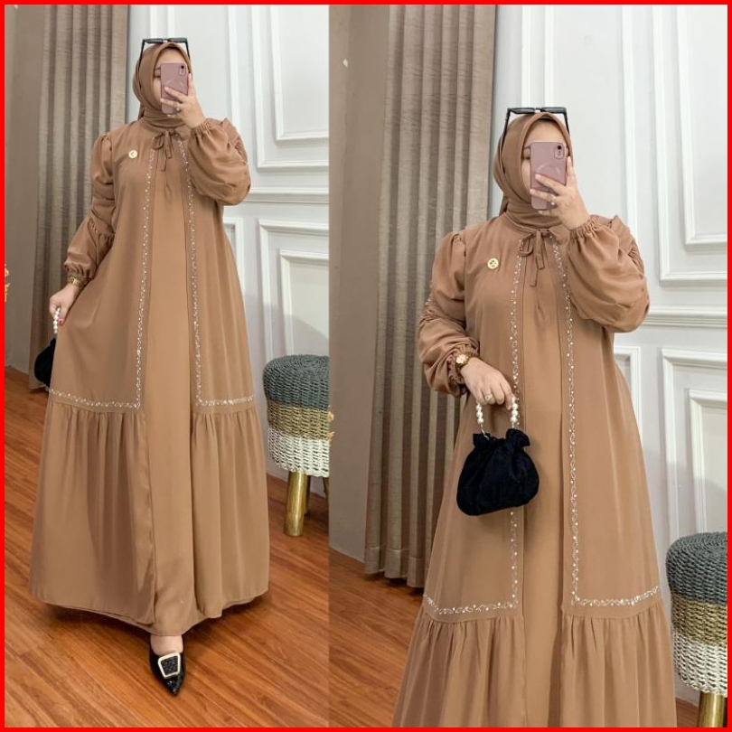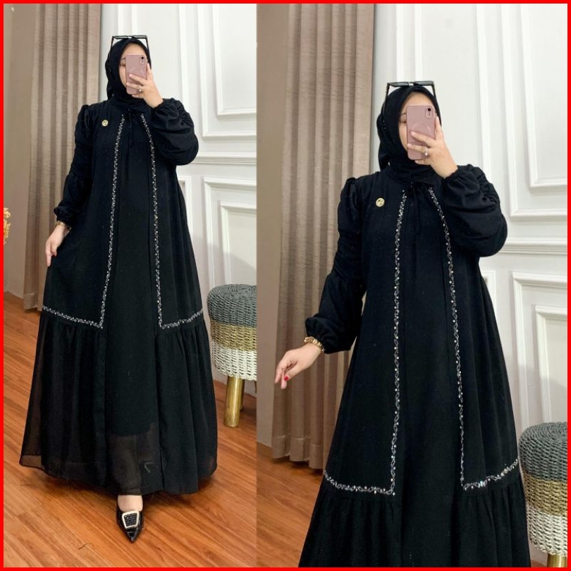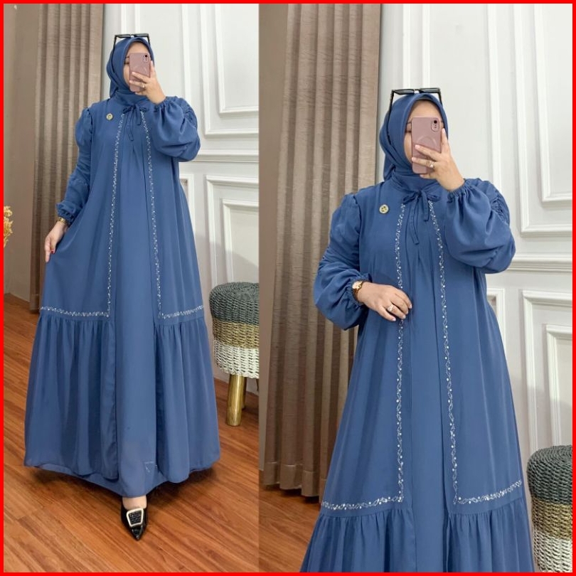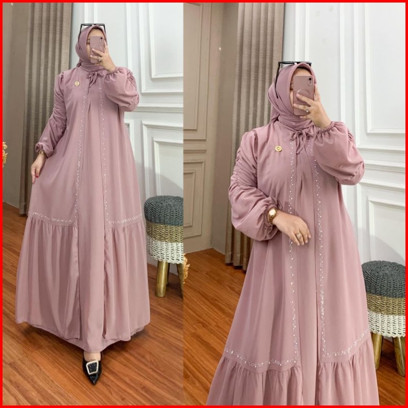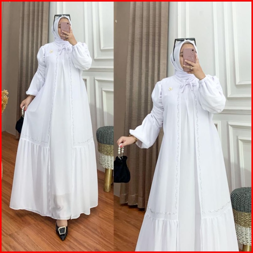Gamis Rayna Swarosky Mewah Pesta Kondangan Ceruty Putih Set Hijab