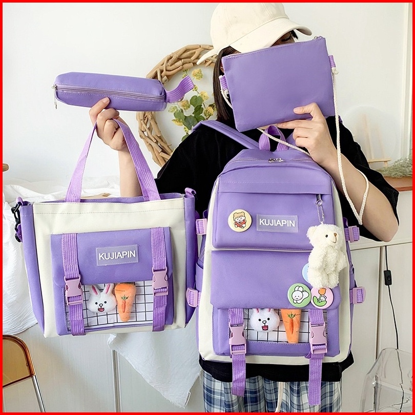 Tas Sekolah Anak Perempuan 4in 1 Tas Ransel Anak Sd Smp Sma Tas Ransel Korea Fashion Bag School