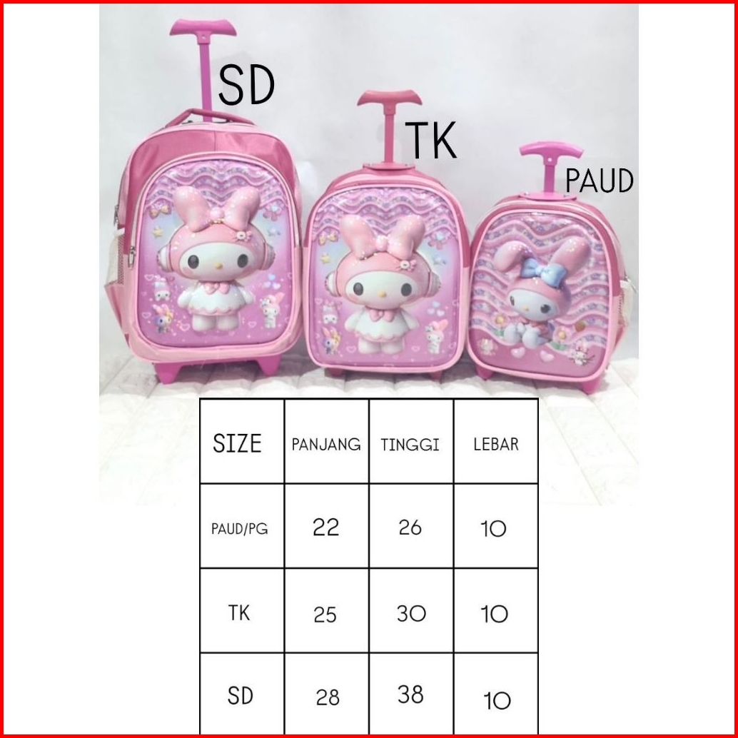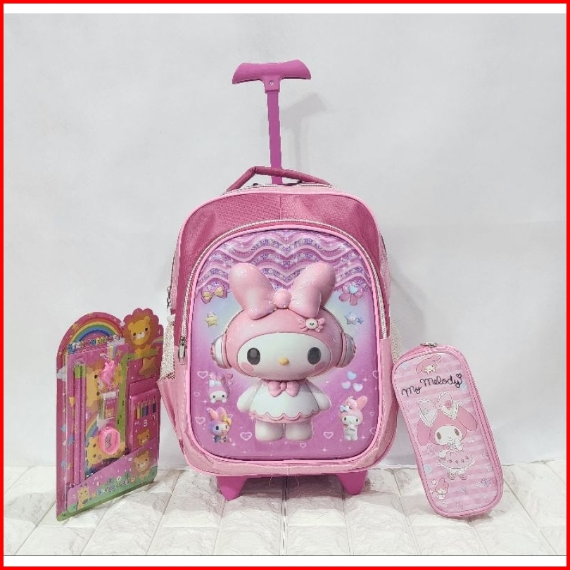 Tas Trolley Anak Perempuan Tk Sd 3d Timbul Led Gambar Melody Cinamonroll