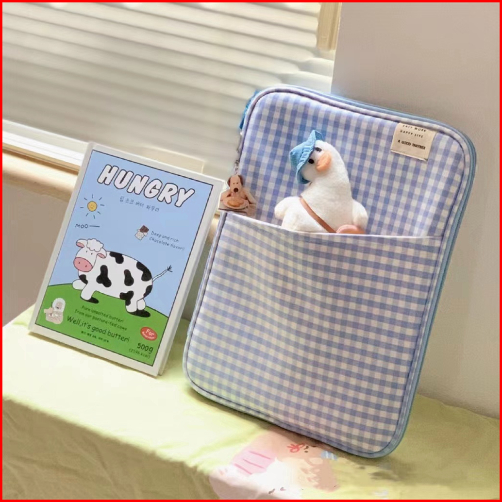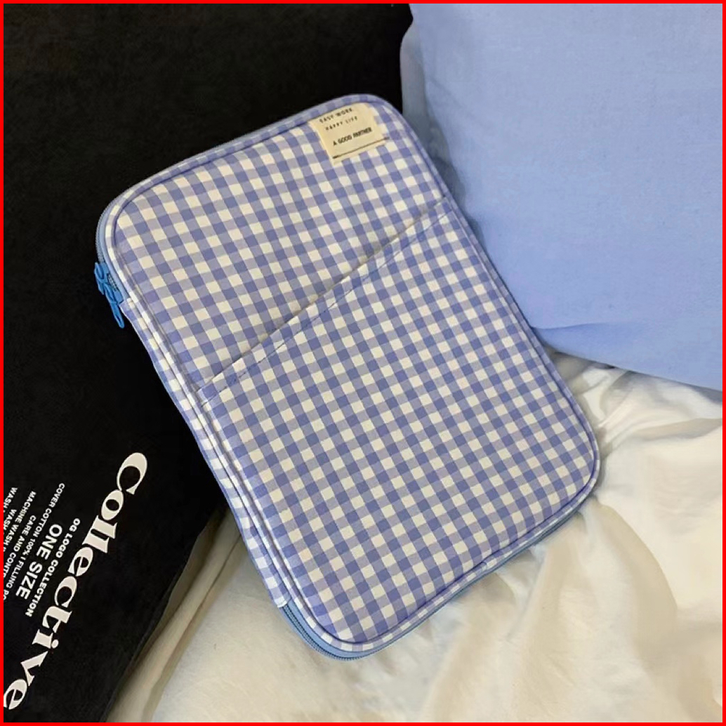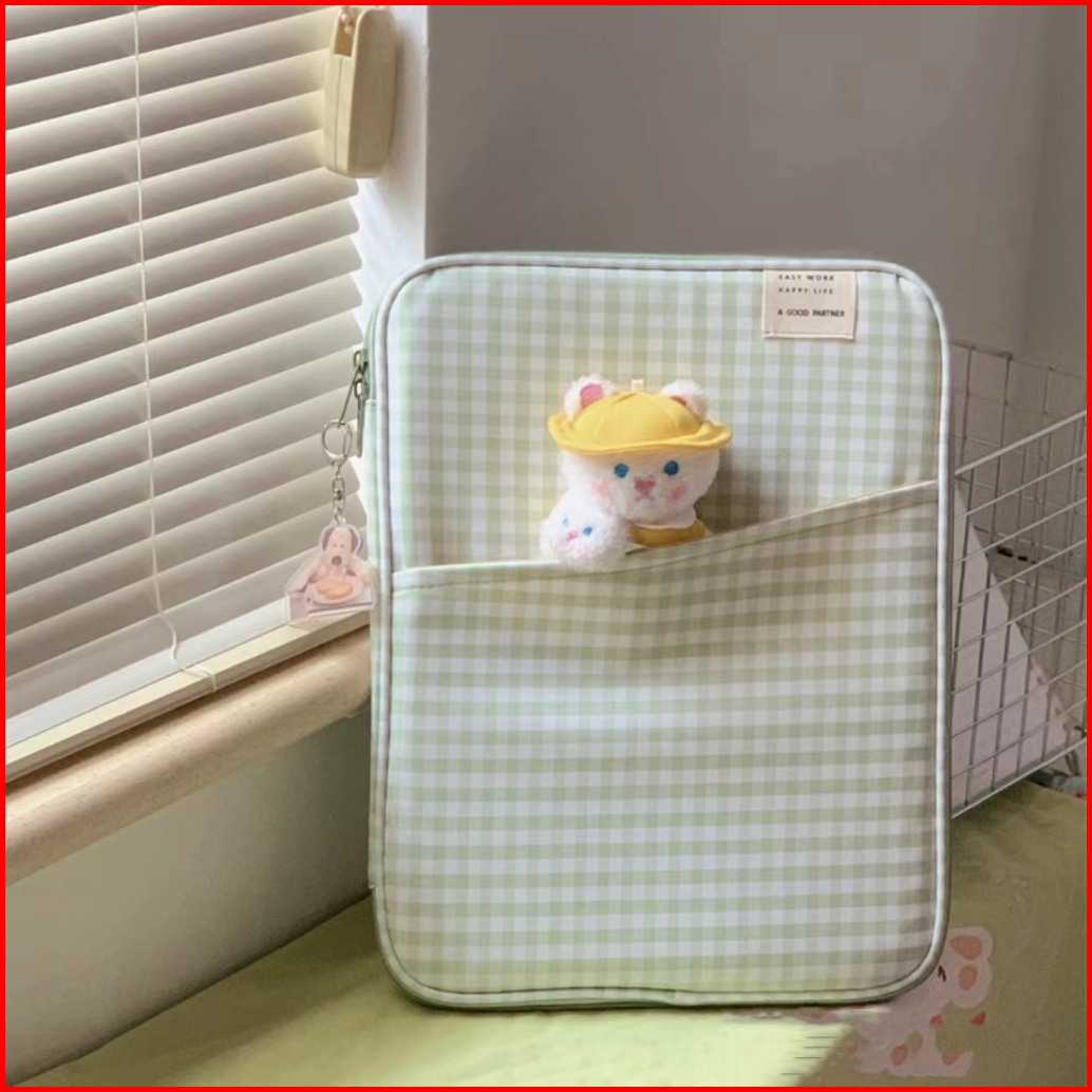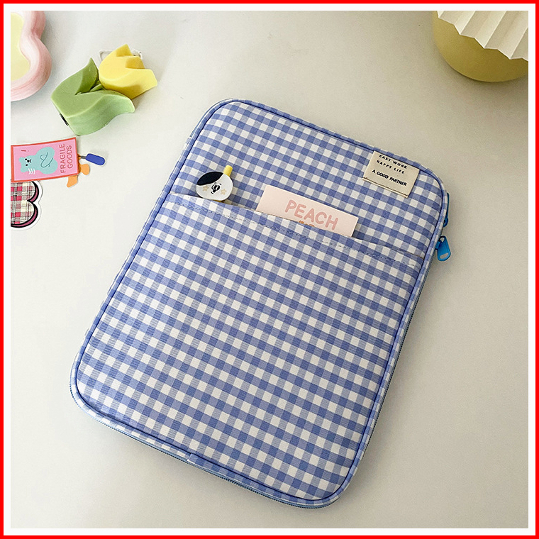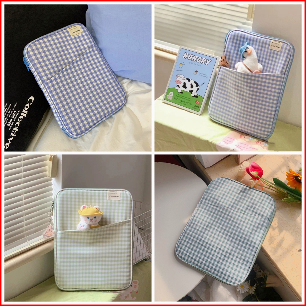 Laptop Ipad Mac Tablet Plaid Tablet Laptop Sleeve 11 12 9 13 Pelindung Softcase Lucu Korean Lembut Lucu