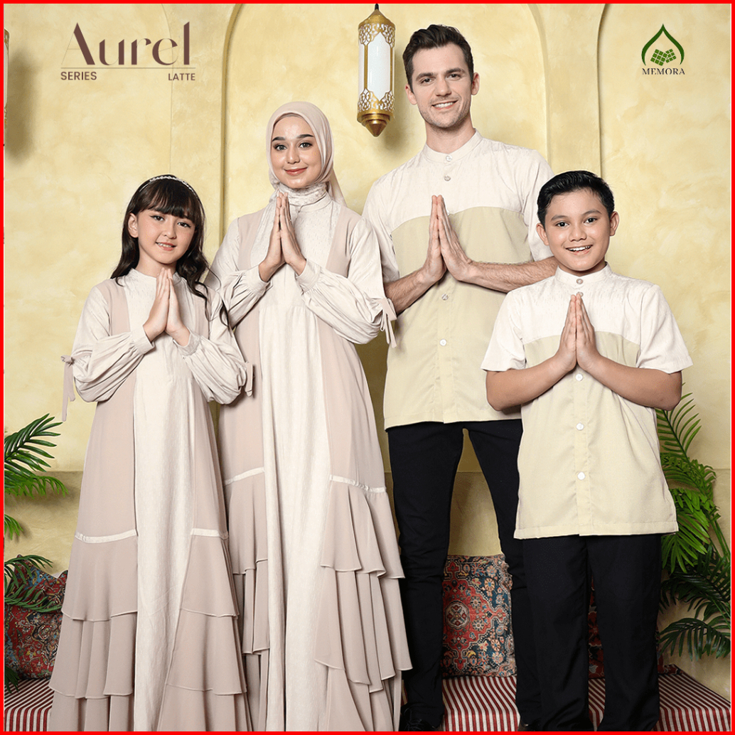 Baju Lebaran 2025 Couple Keluarga Series Aurel Latte By Memora - Baju Couple Keluarga Lebaran 2025 Original Amanah - Sar