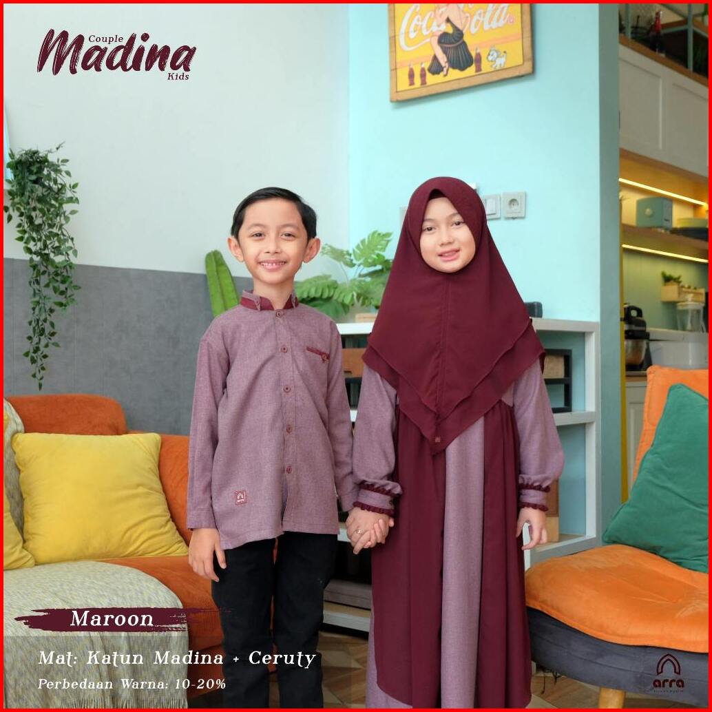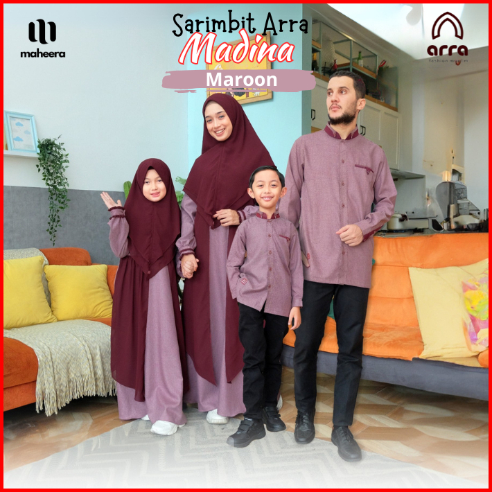 Sarimbit Keluarga 2025 Baju Lebaran 2025 Couple Keluarga Ayah Ibu Anak Arra Madina Maroon