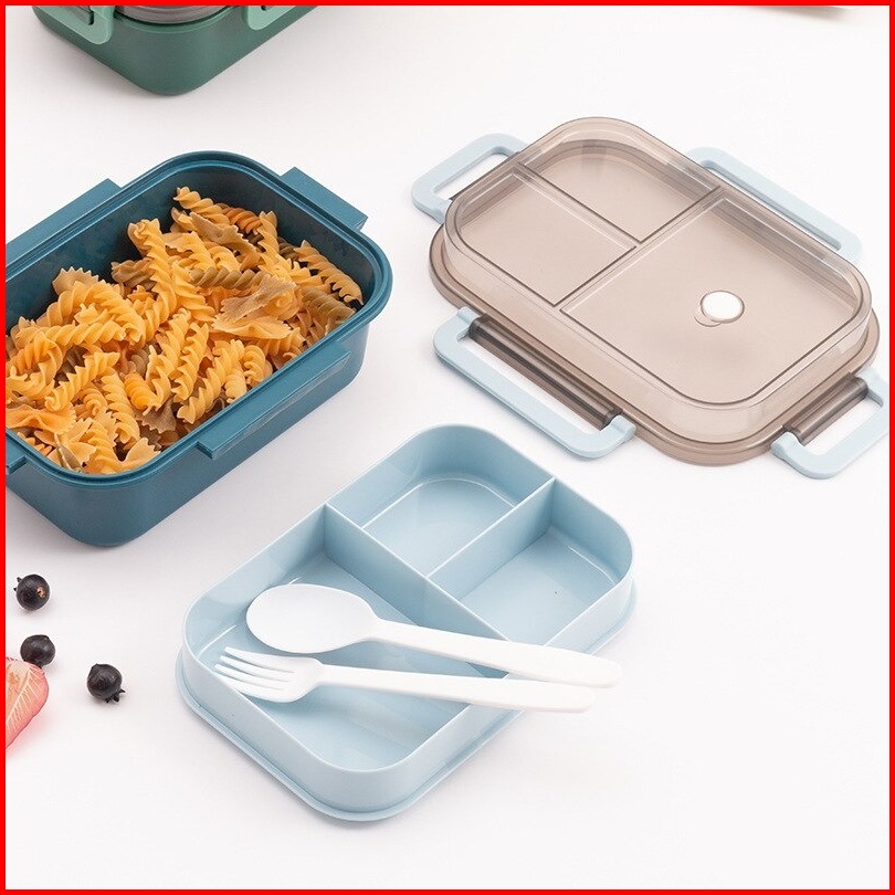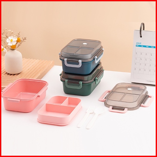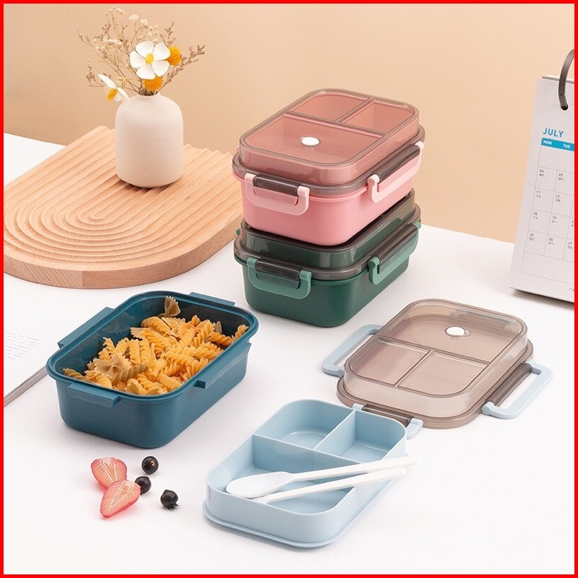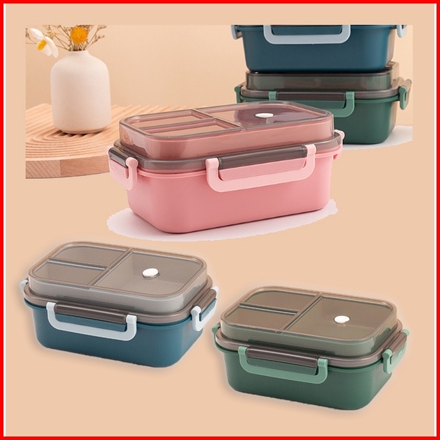 Tempat Makan Set 2 Tingkat 3 Sekat Anti Tumpah Lunch Box Susun Free Sendok Garpu Portable Kotak Bento Tingkat Set Bpa Fr