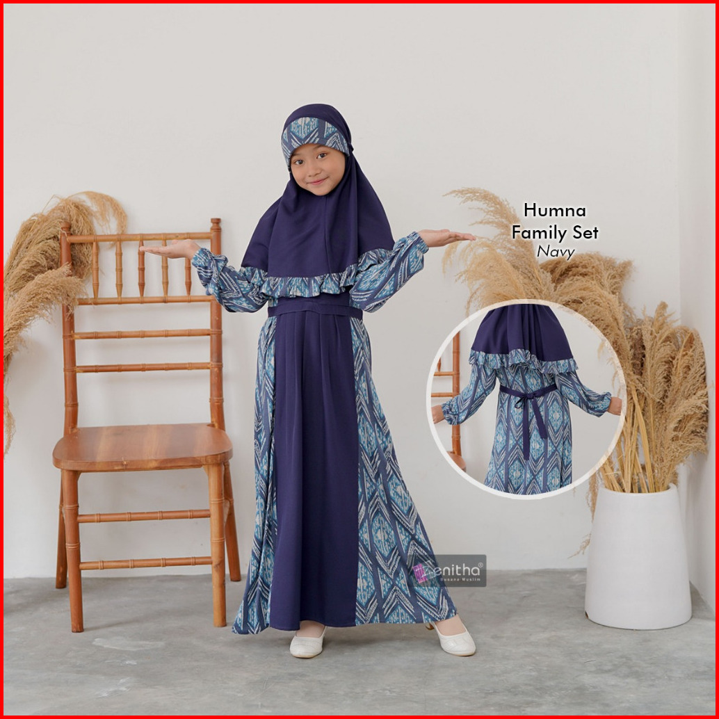 Zenitha Sarimbit Humna Hitam Navy - Sarimbit Keluarga Lebaran Couple Family Set Premium