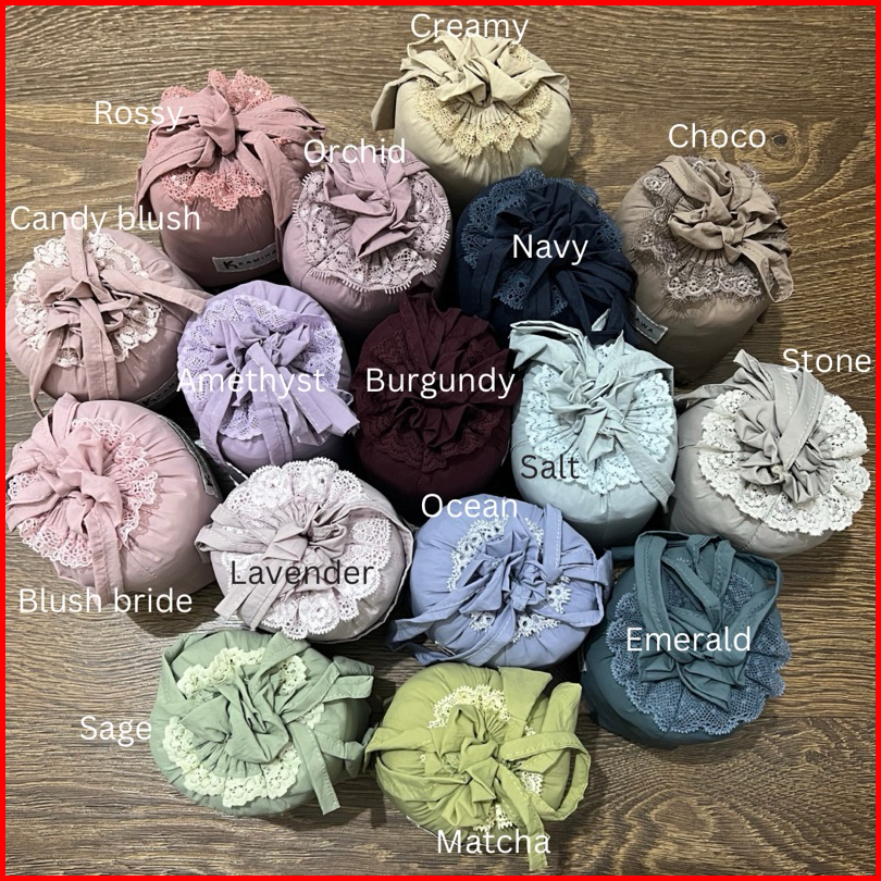 Salt, Ocean, Emerald, Creamy, Candy Blush, Rossy, Lavender, Orchid, Blush Bride, Black, Burgundy, Choco, Stone, Amethyst, Matcha, Sage, Navy, Gleam, Bitter, Sweet Grape