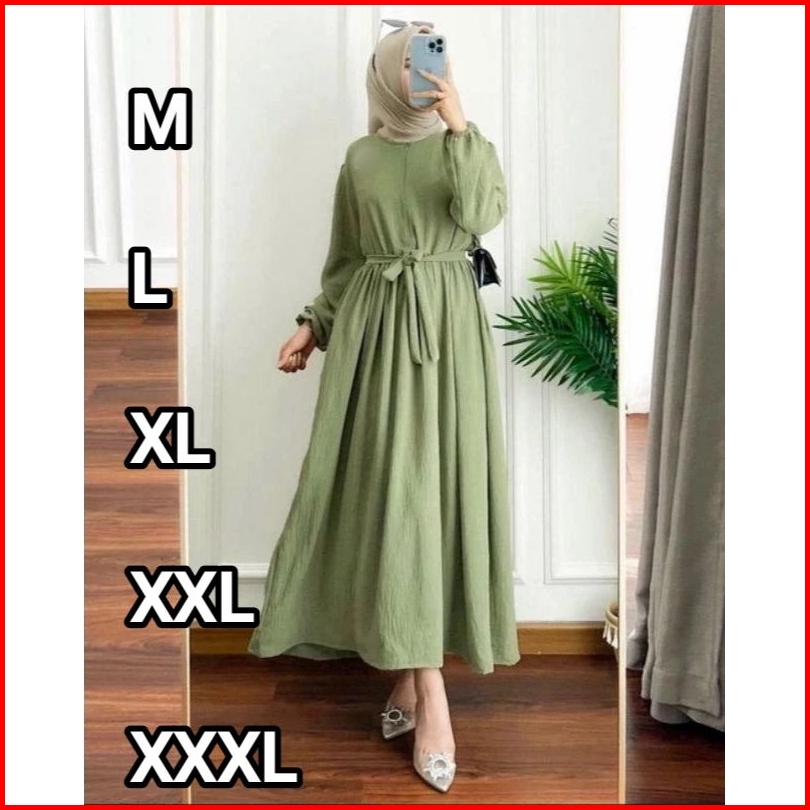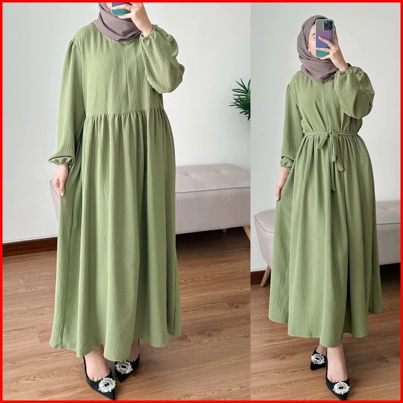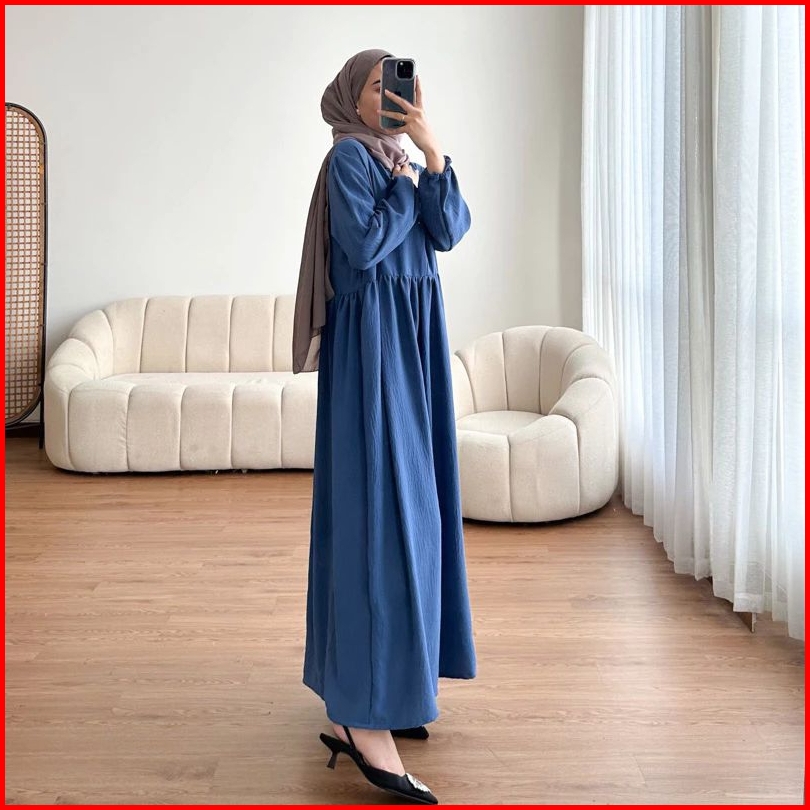 Gamis Midi Dress Bahan Cringkle Airflow Premium