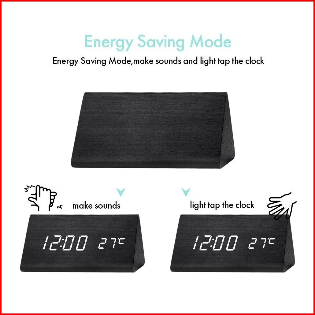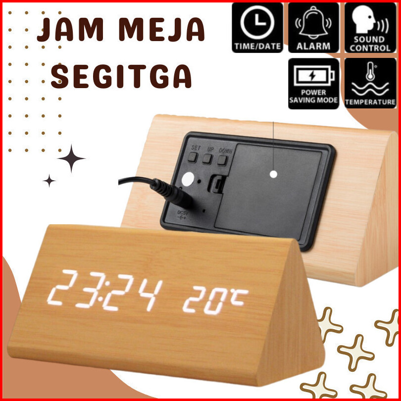 Jam Meja Segitiga Kayu Digital Led Digital Wood Smart Alarm Clock Jam Weker Alarm Led Clock Waker Suhu Jam Meja
