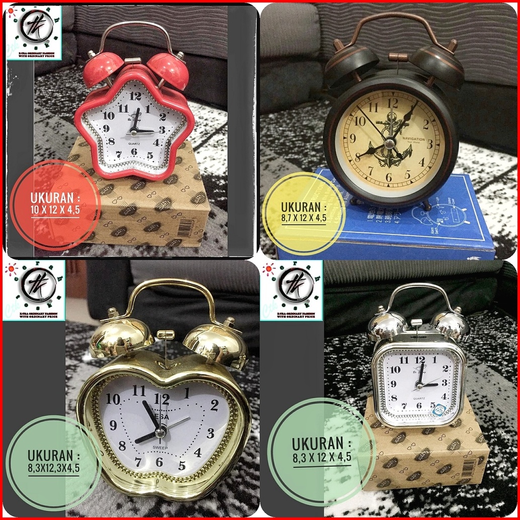 Jam Weker Beker Alarm Kring Suara Nyaring Vintage Silver Dekorasi Meja Unik