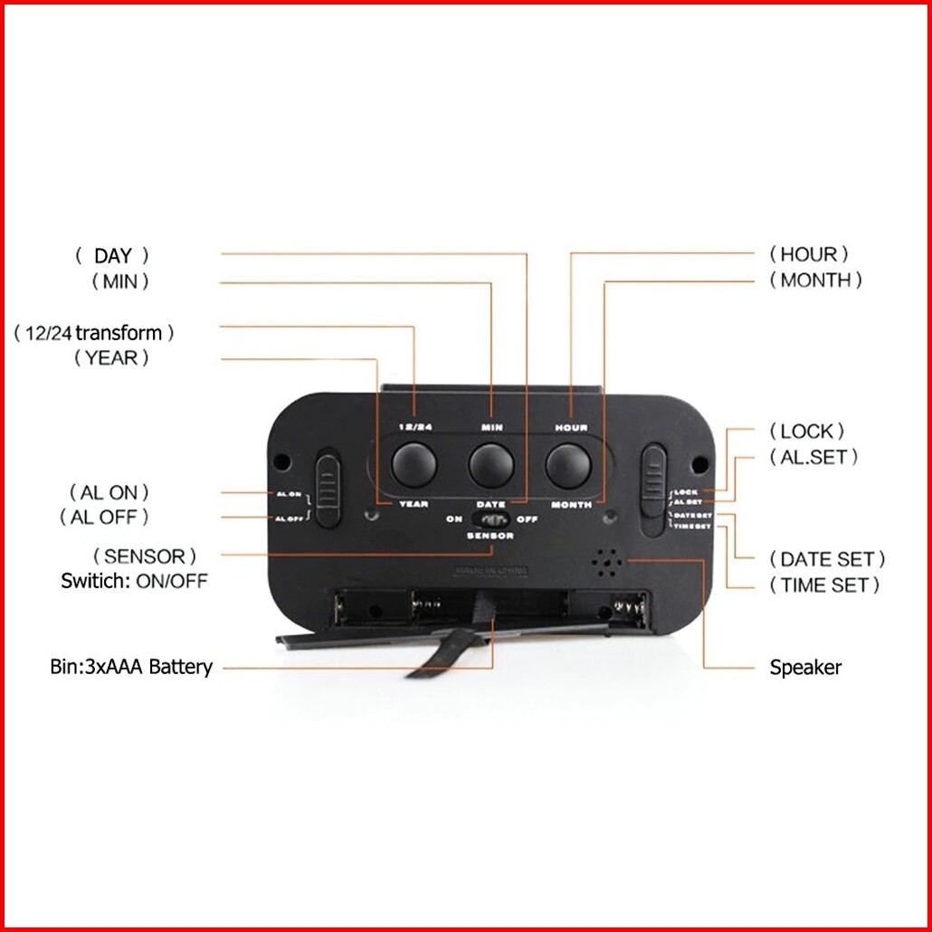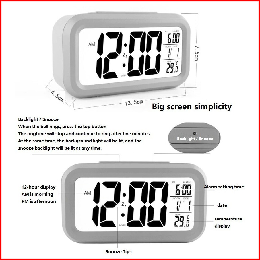 Fanju Jam Weker Kamar Pembangun Tidur Lcd Digital Waker Alarm Temperatur Sensor Weaker Hitam Putih