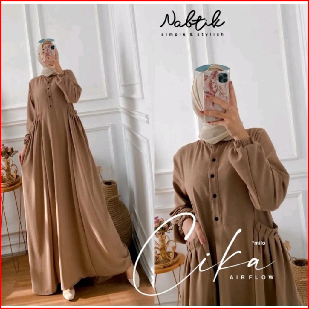 Gamis Wanita Dewasa Simpel Viral Bahan Crinkle Dres Cika Muslimah Elegan Mewah Gamis Remaja Kekinian