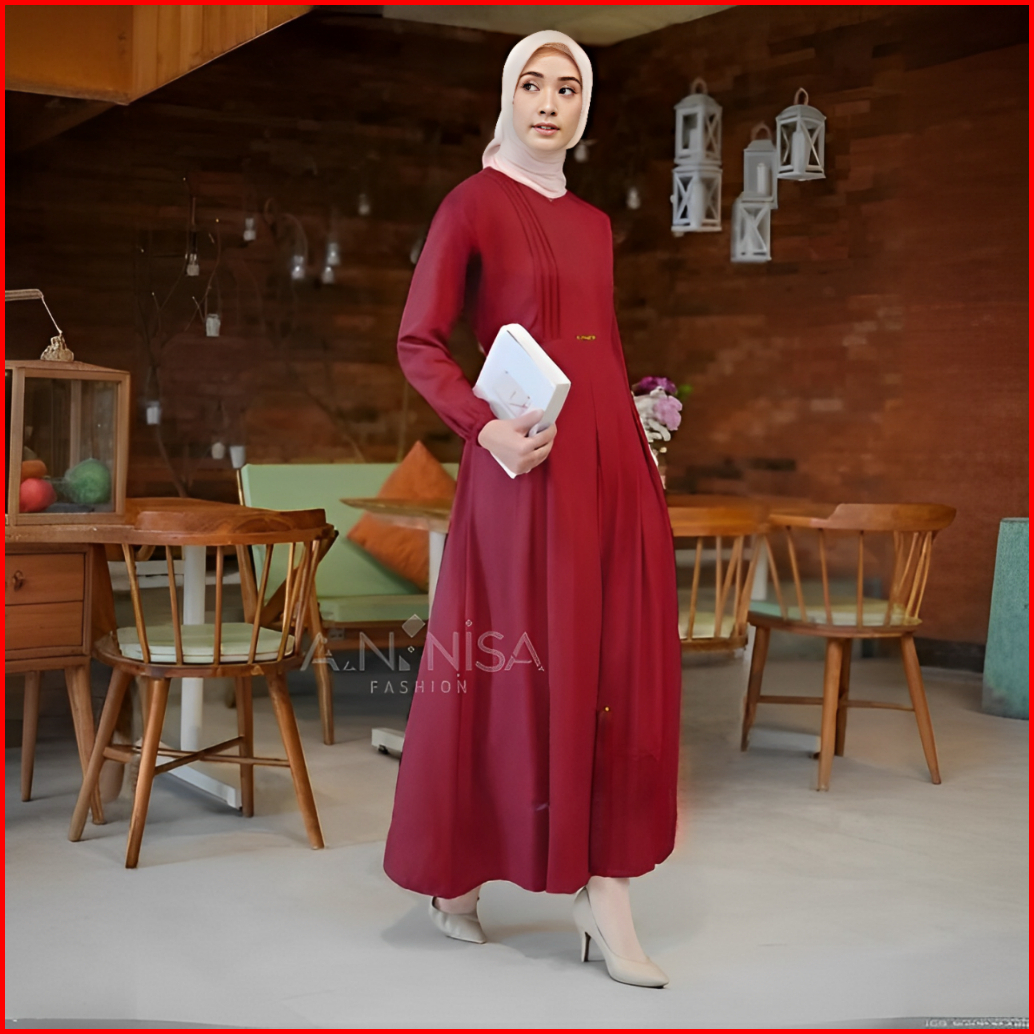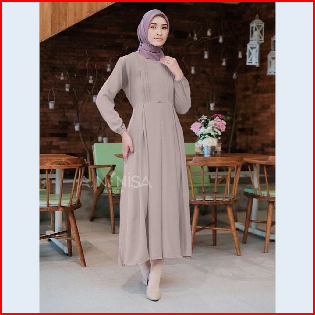 Gamis Polos Premium An Nisa Crinkle Busui Terbaru 2025 Simpel Elegan Lebaran Kekinian