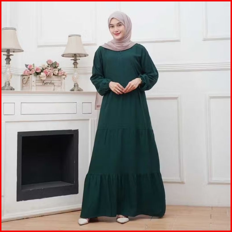 Gamis Susun Rayon Gamis Ruffle Homey Dress Rayon Polos Busui Friendly