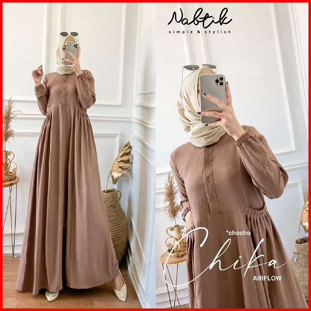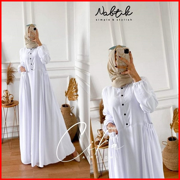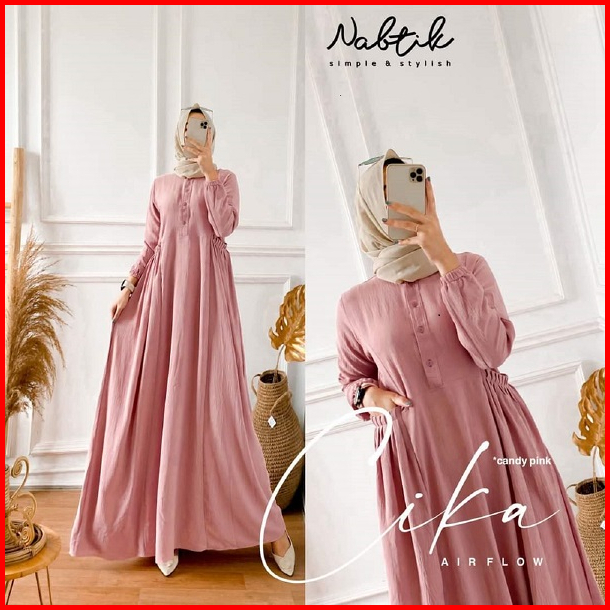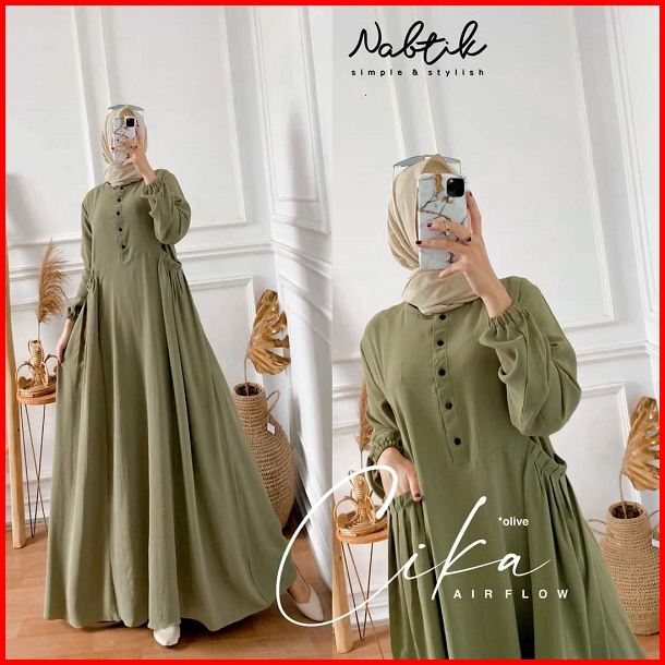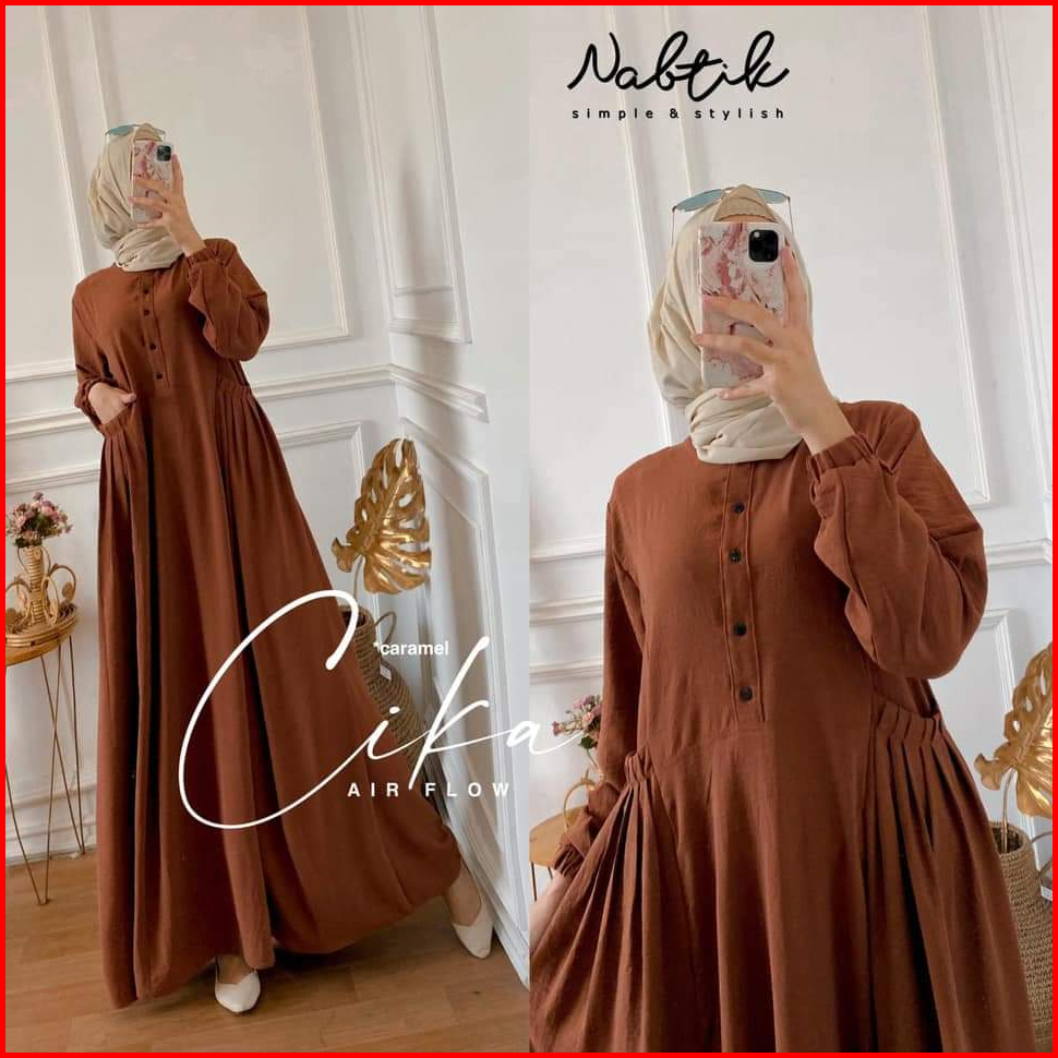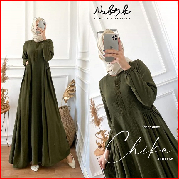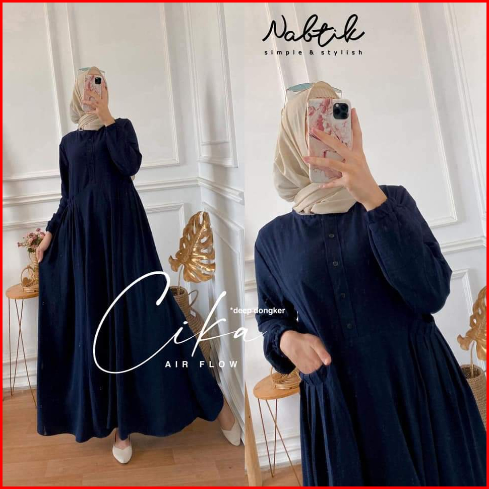 Gamis Hitam Polos Bahan Crinkle Premium Gamis Remaja Kekinian Elegan Simpel Busui Kancing Depan