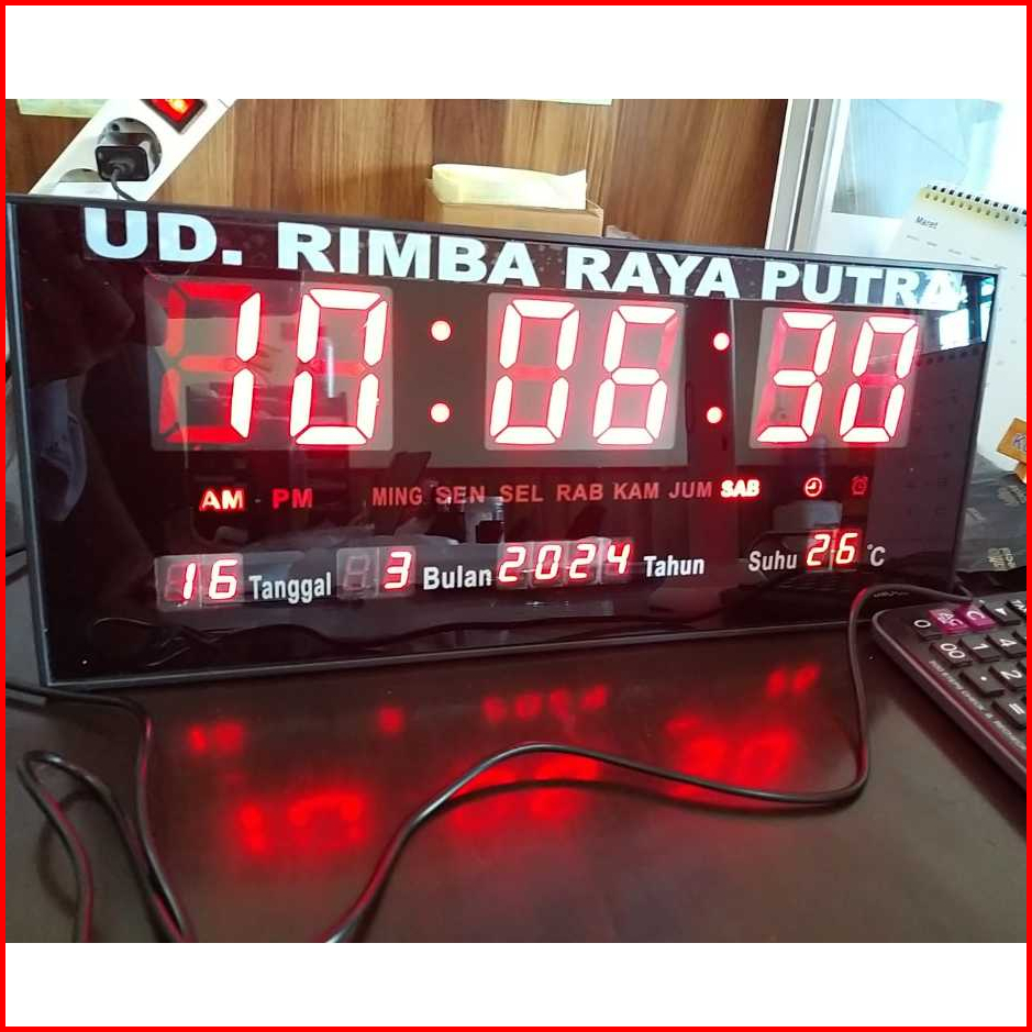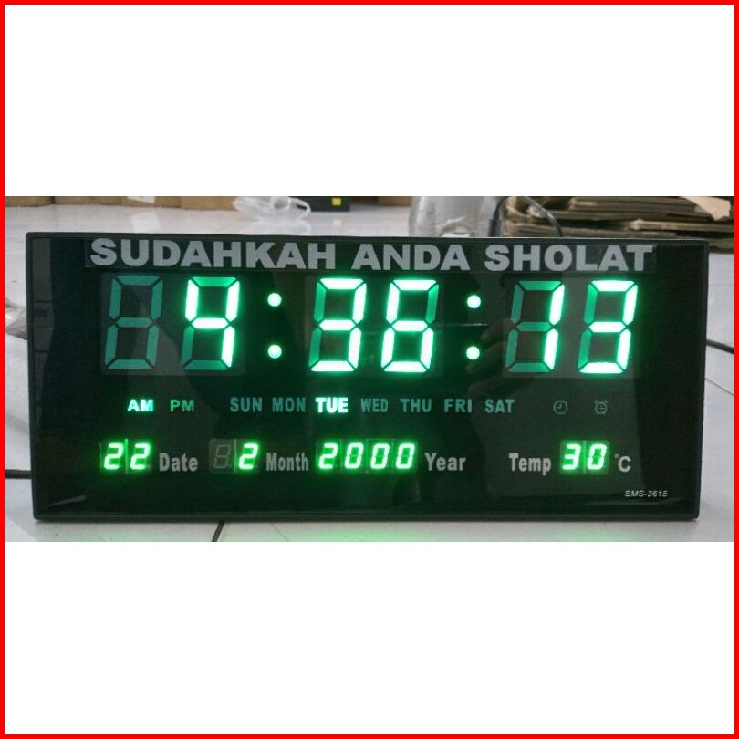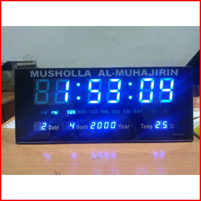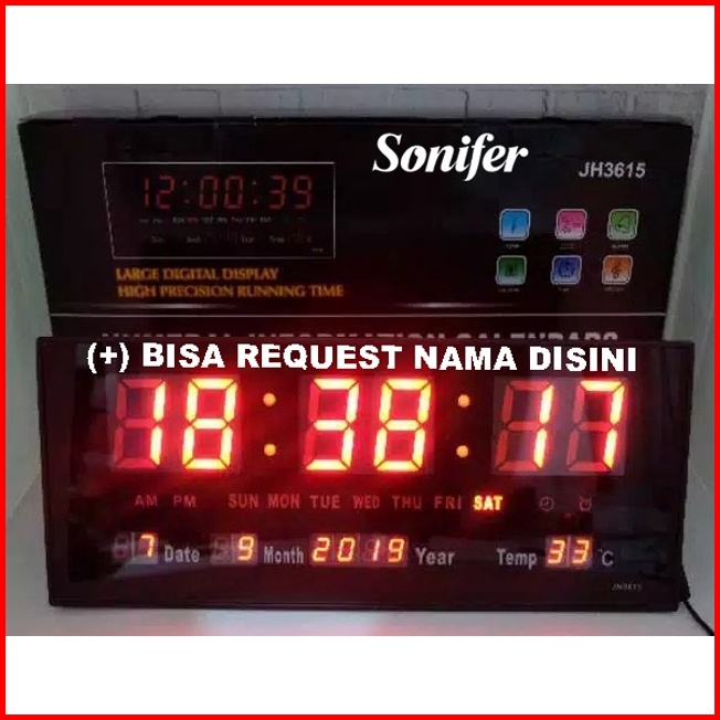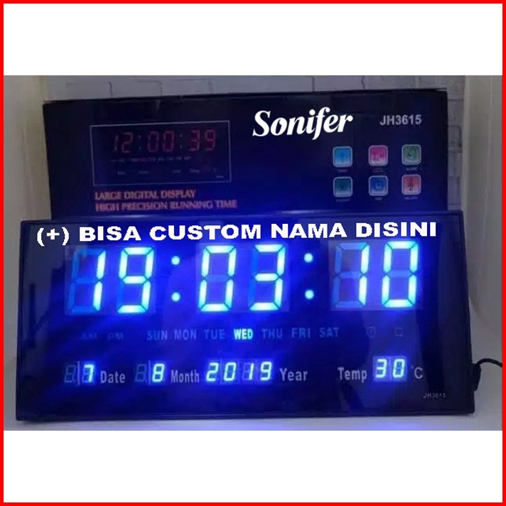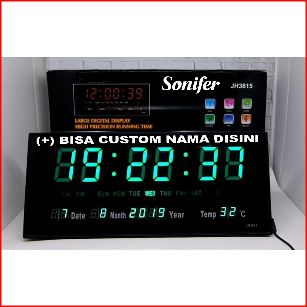 Jam Dinding Digital Sonifer Sms-3615 Led Clock 36 X 15 Cm Led Hijau Biru Free Custom Nama