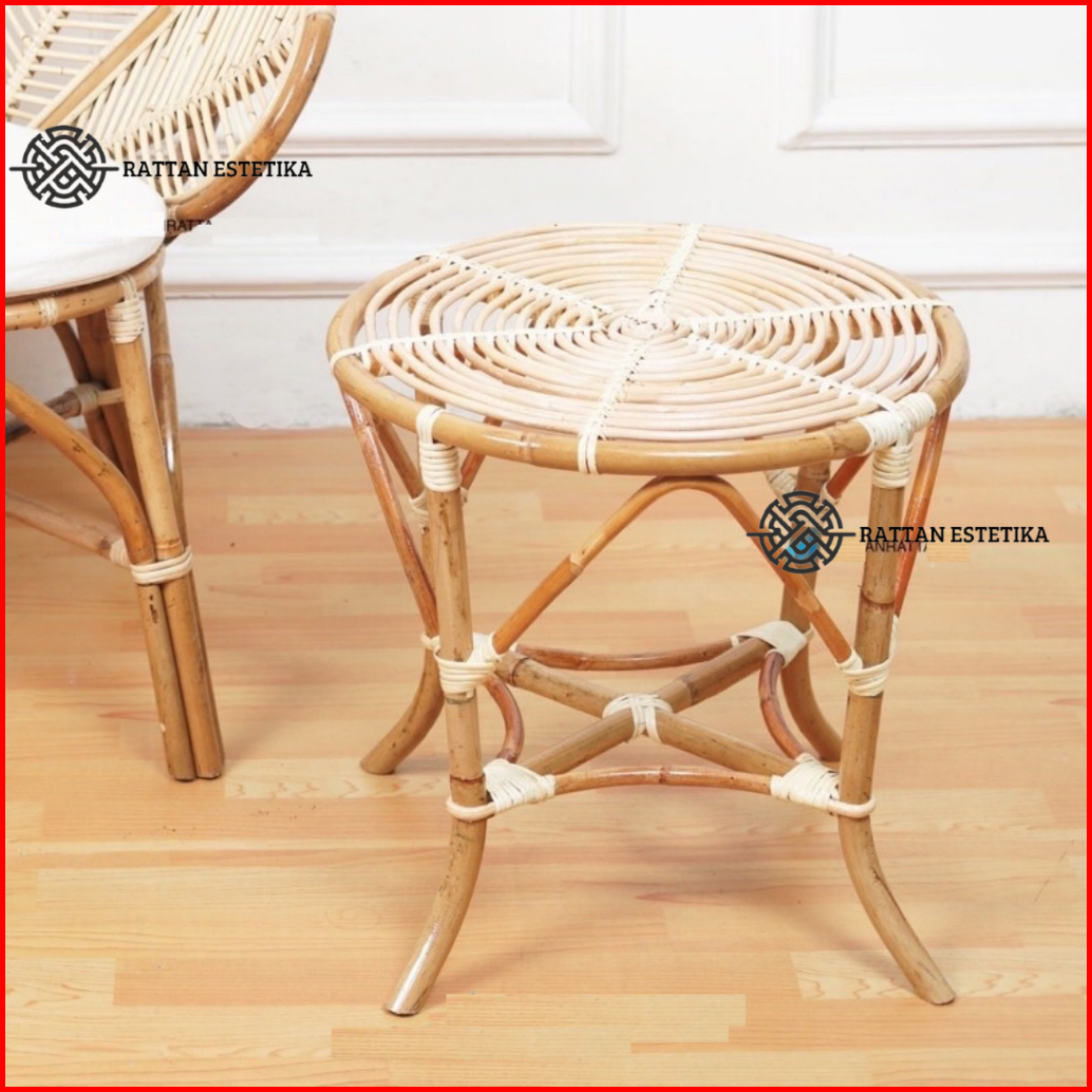 Kursi Teras Daun Rotan Kursi Santai Teras Taman Rotan Alami Dengan Bantal Finishing Melamin