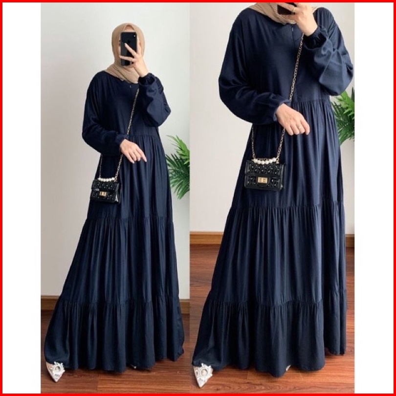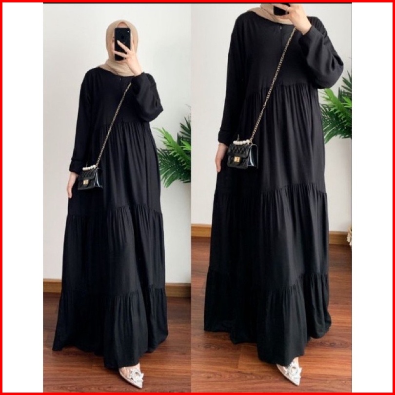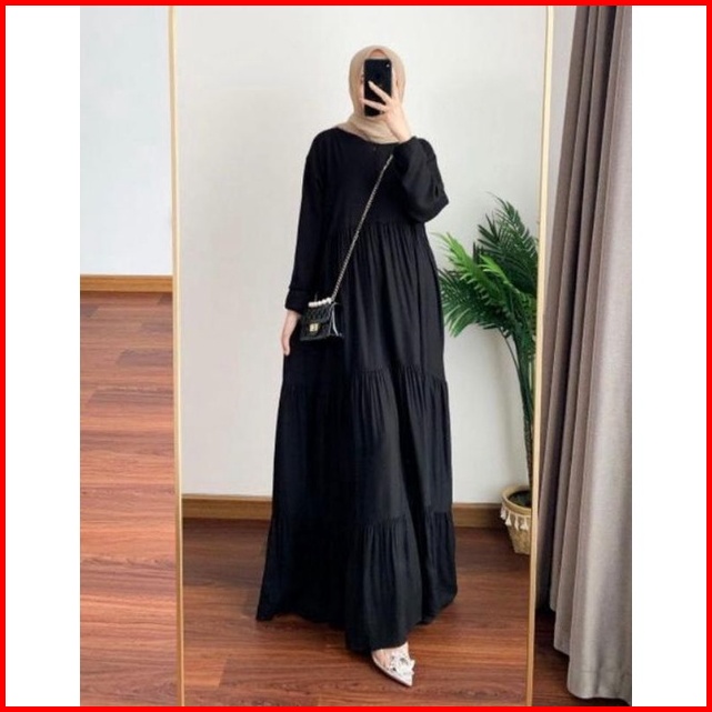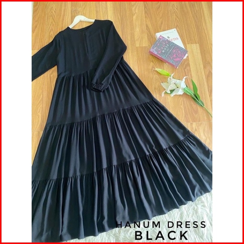 Hanum Dress Premium Dress Polos Gamis Busui Dress Rayon Dres Hitam