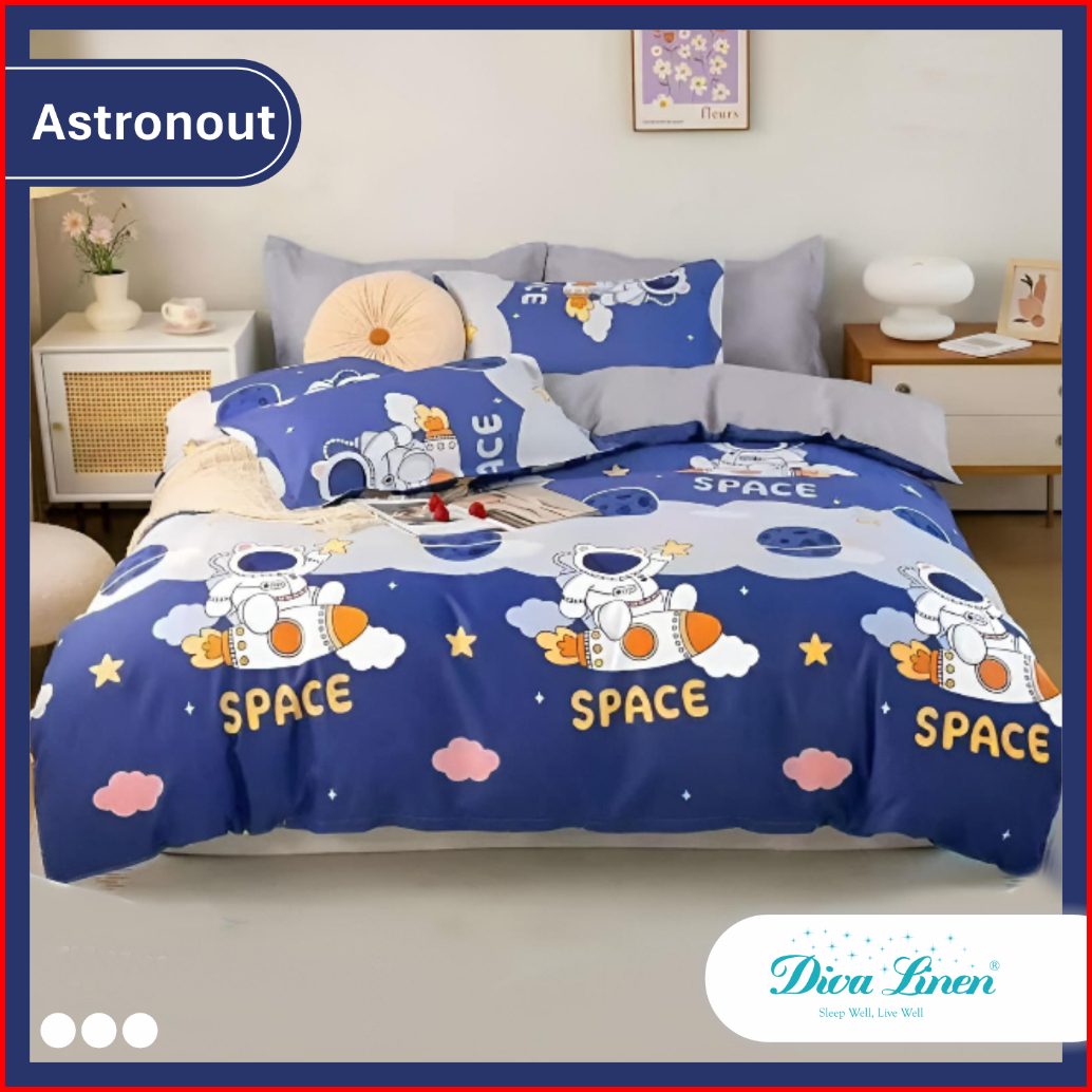 Diva Linen Set Sprei Anti Luntur Tinggi 30 Microtex Untuk Anak Laki-laki Motif Astronot