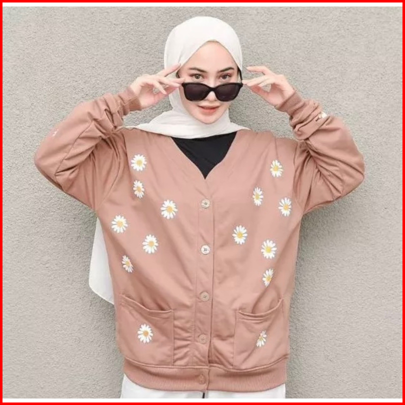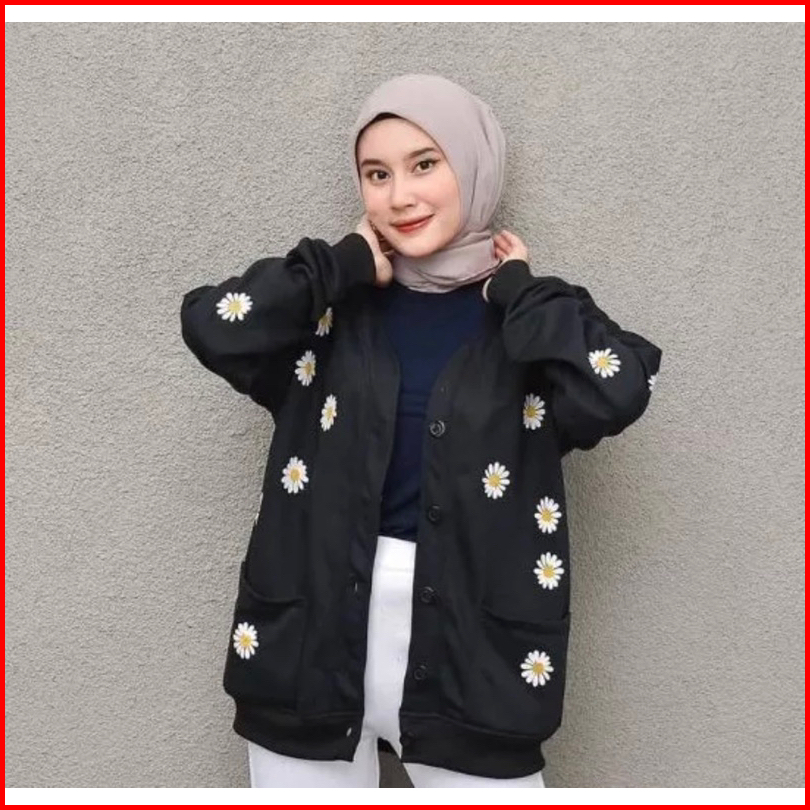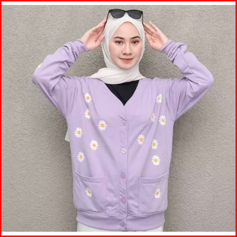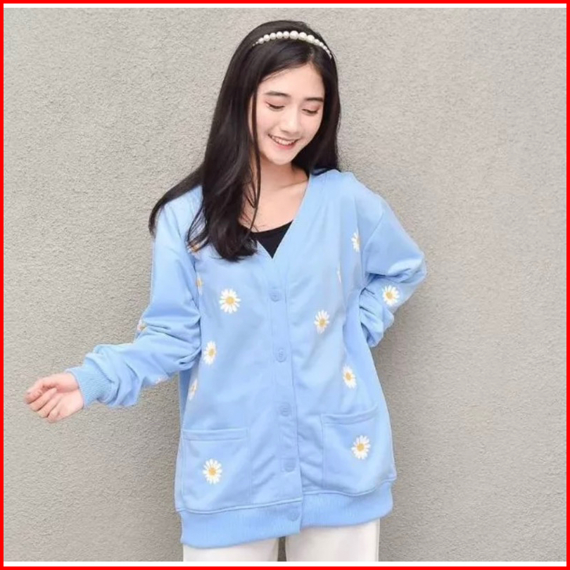 Outher Wanita Little Daisy Flower - Cardie Wanita Bahan Flecee