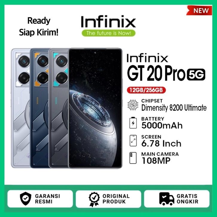 (FREE ONGKIR)INFINIX GT 20 PRO 5G - Garansi Resmi [Dimensity 8200 Ultimate] - 108Mp OIS - 8/256 12/256GB