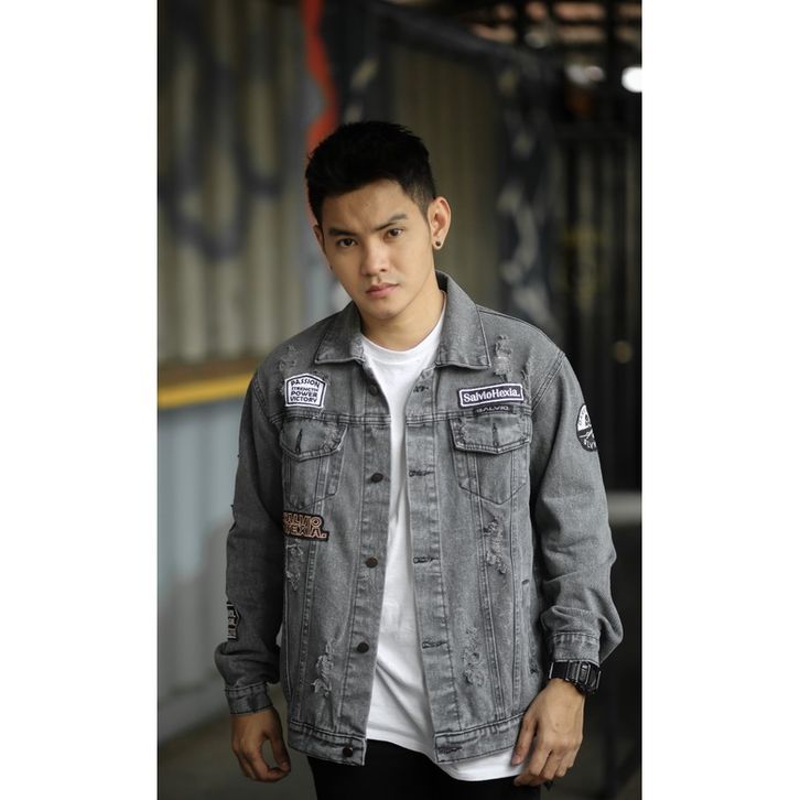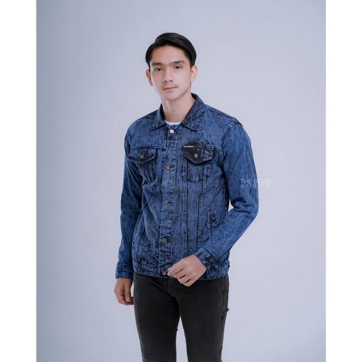 KEREN JAKET JEANS DENIM PRIA SANWASH MOTIF BORDIR