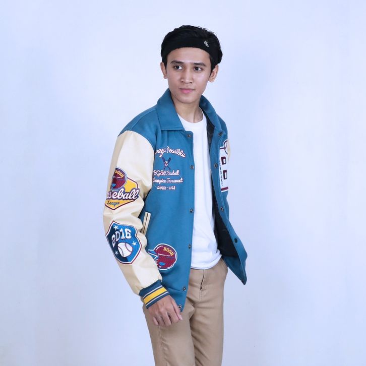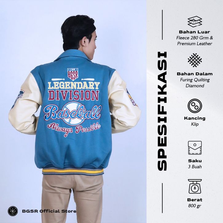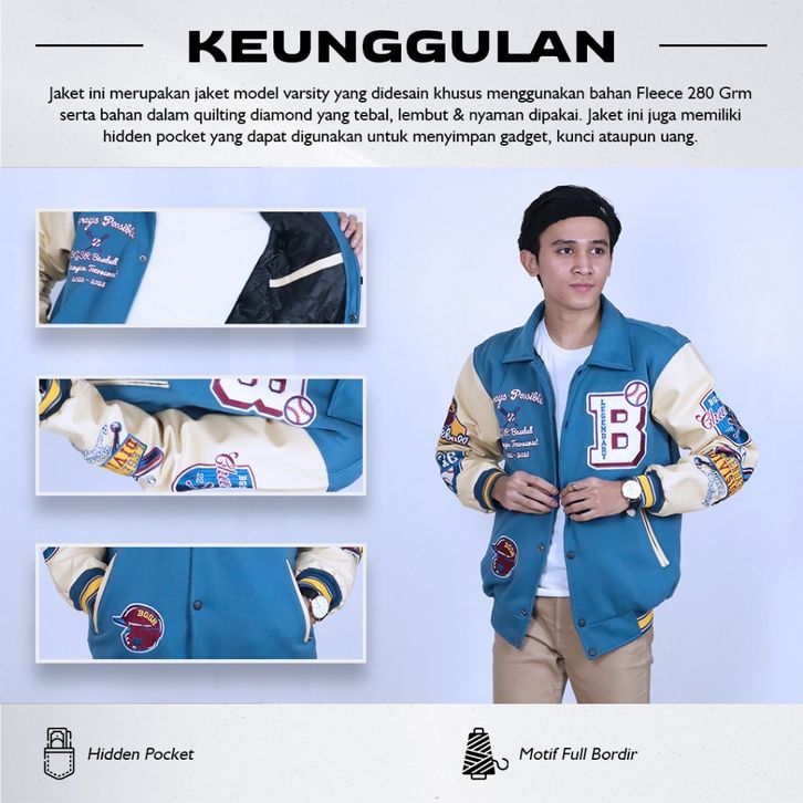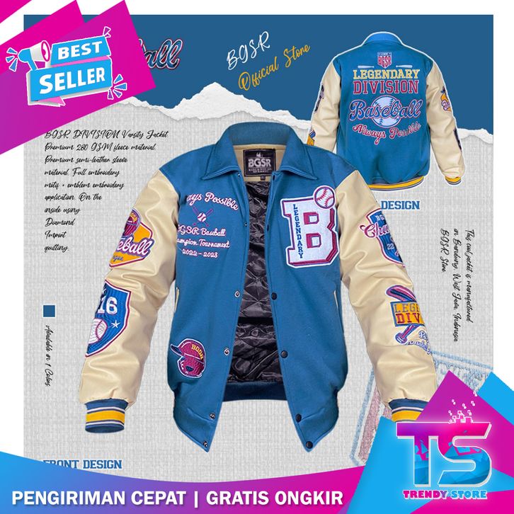 KEREN JAKET VARSITY DIVISION JACKET WINDBREAKER BASEBALL VINTAGE BORDIR TEBAL LENGAN KULIT PREMIUM