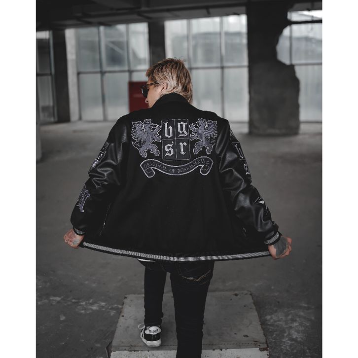 KEREN JAKET VARSITY JACKET BASEBALL WINDBREAKER BLACKGREY BORDIR TEBAL ADEM TERBARU BGSR