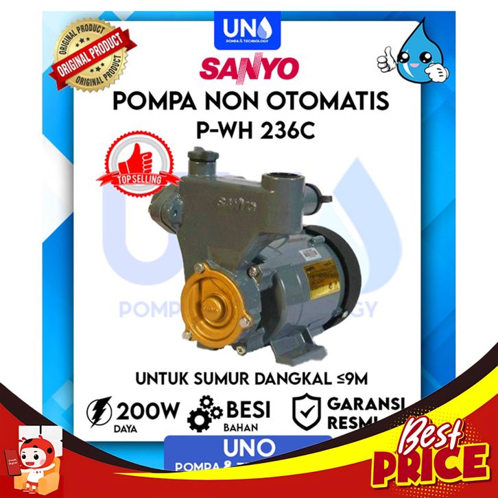 BAGUS SANYO POMPA AIR SUMUR DANGKAL NON AUTO OTOMATIS PWH-236 C / PWH 236 C / PWH236C