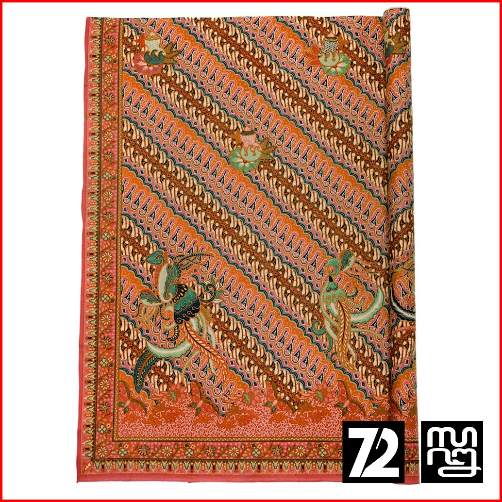 Kain Batik Premium Bahan Katun Motif Parang Seling Kusumo Orange Piech Salem Hijau Terakota 723379 Cap 72 Jarik Jarit Sa