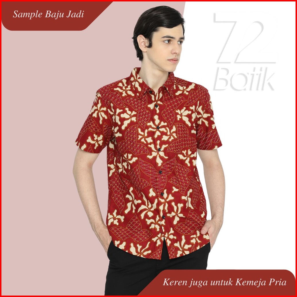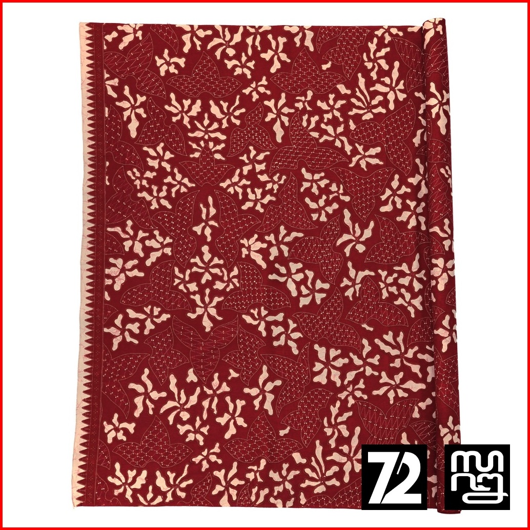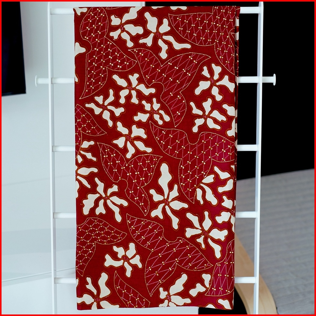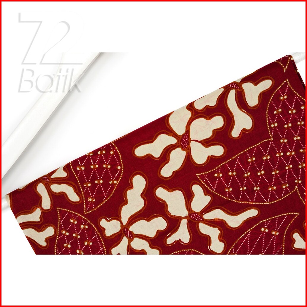 Kain Batik Premium Bahan Katun Motif Daun Menjari Kontenporer Modern Merah Maroon Burgundy Ungu Kuning Gading 724925 Cap