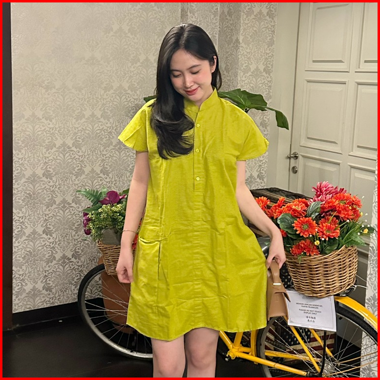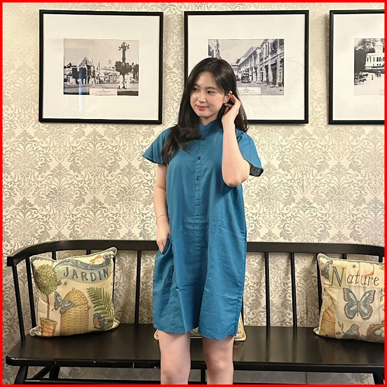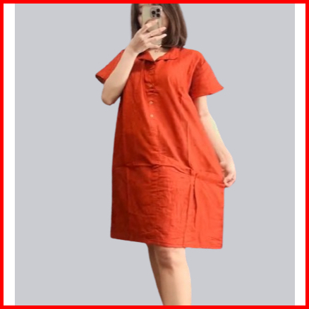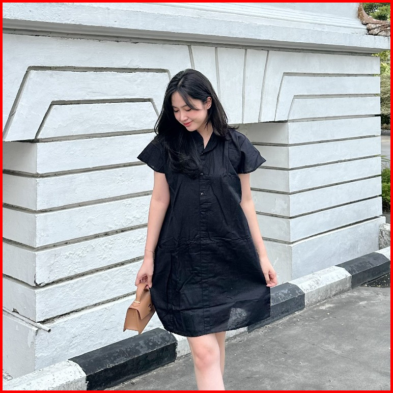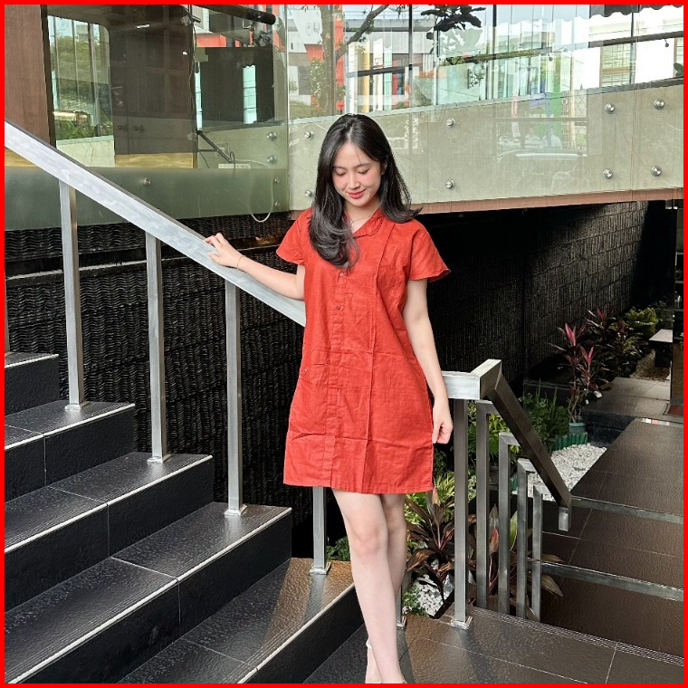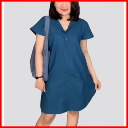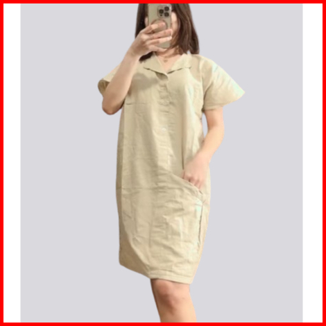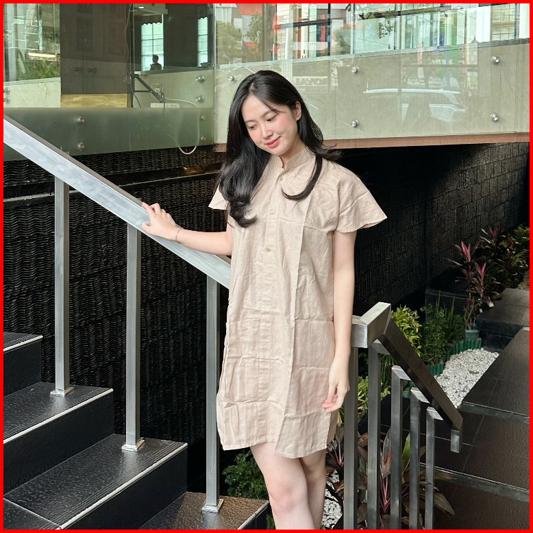 Laura Midi Dress Linen Mini Dress Casual Wanita Korea Style Lengan Pendek Polos Wanita Oversize Terbaru