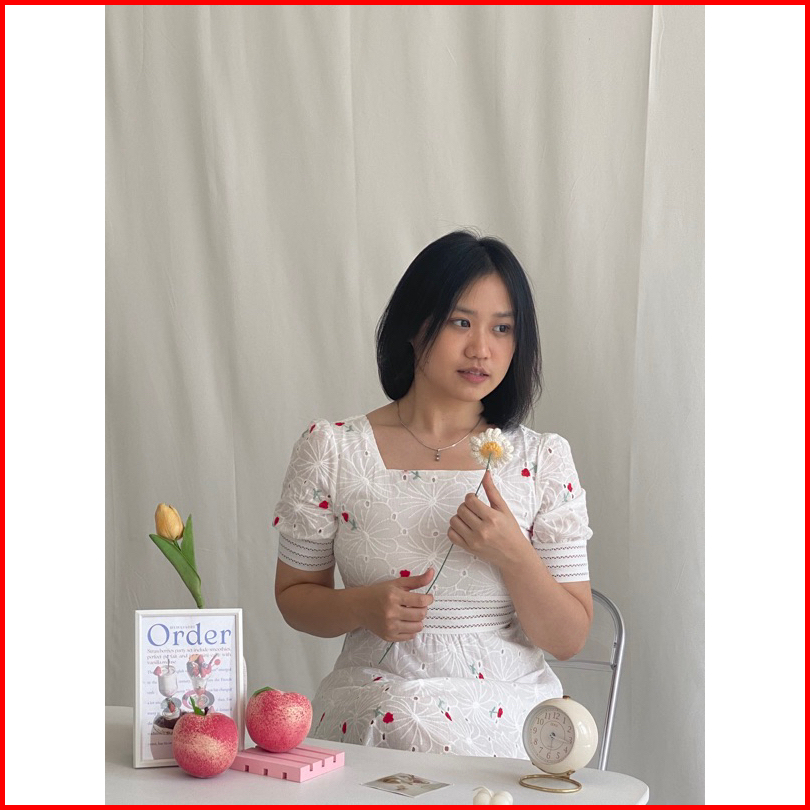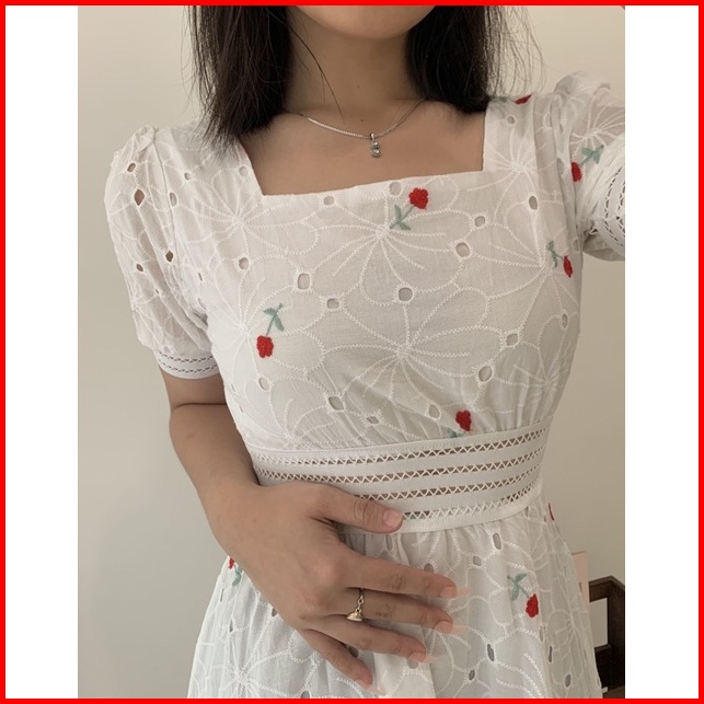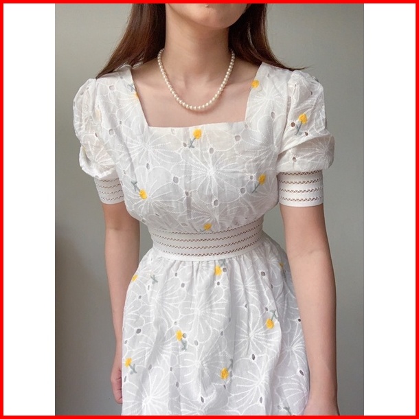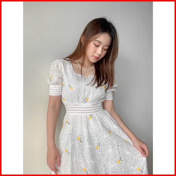 Nuoir Alona Dress L Korean Floral Vintage Midi White Dress
