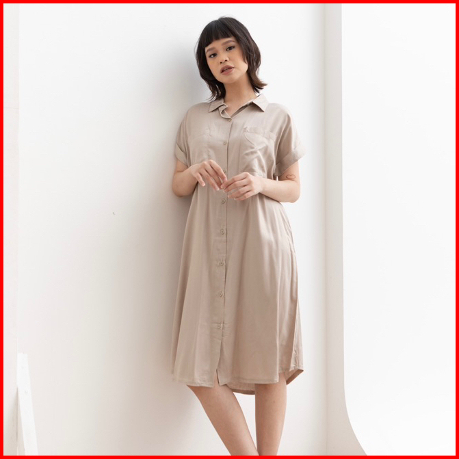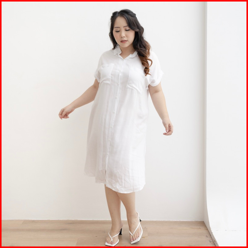 Eclaire - Andrea Long Shirt Normal Grande Bigsize Dress Kemeja Katun Rayon Comfy Nyaman Korea Wanita Casual S-l Xl Xxl J