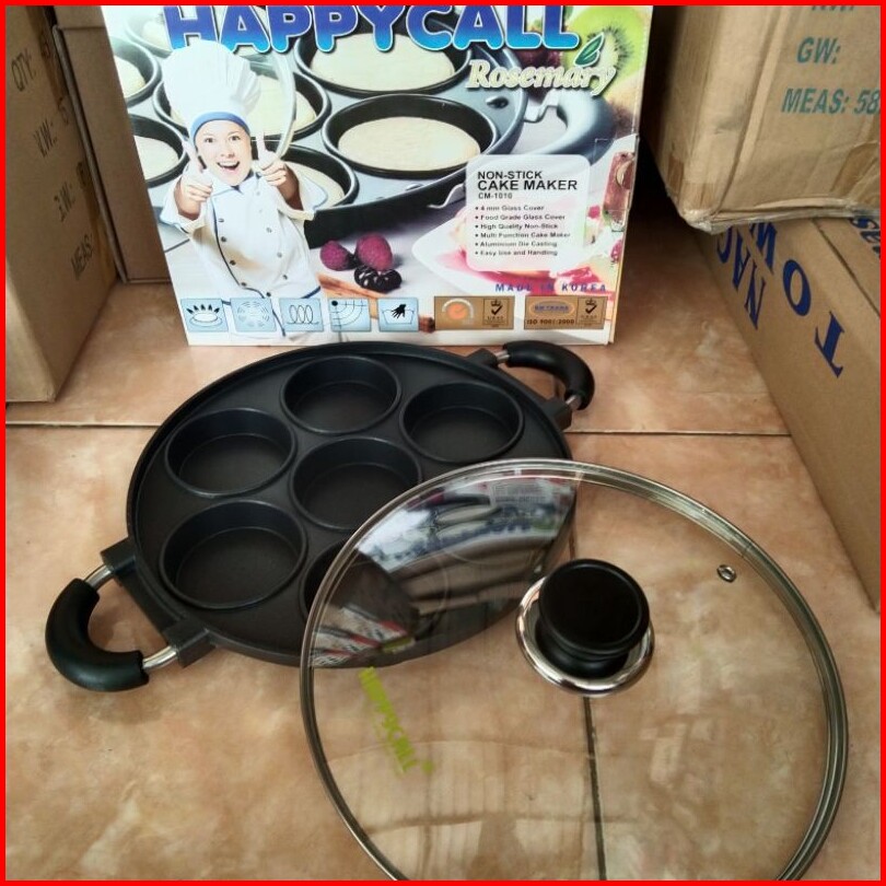 Cetakan Kue Martabak Mini Lubang 7 Datar Happy Call Bonus Buku Resep Dan Sodet