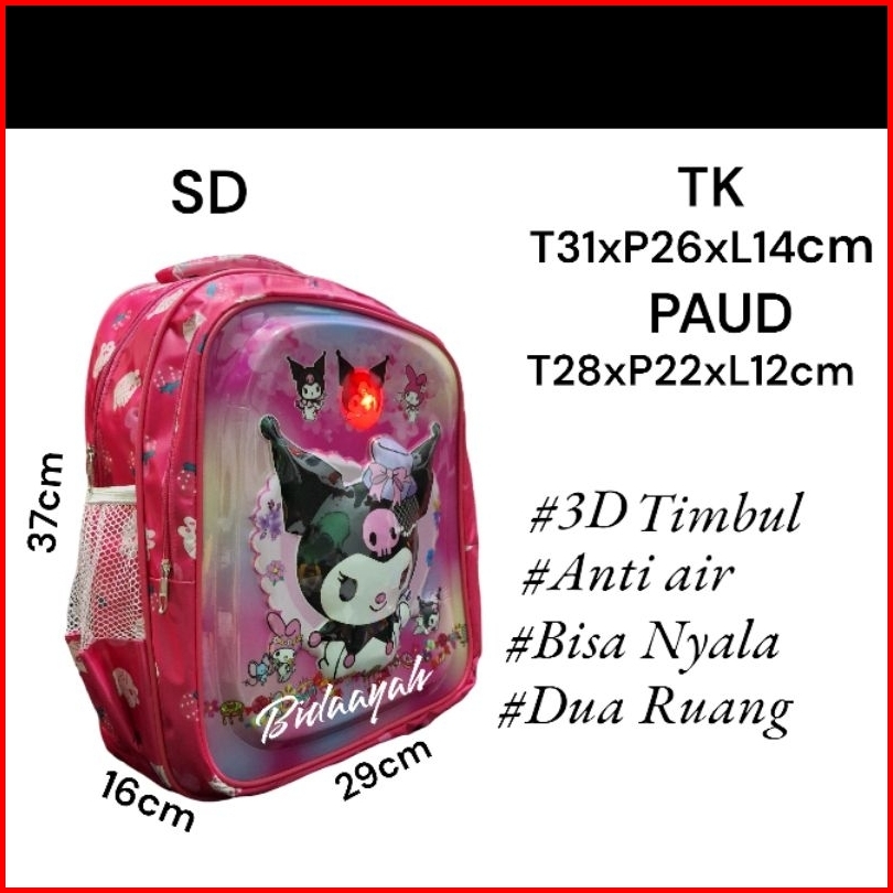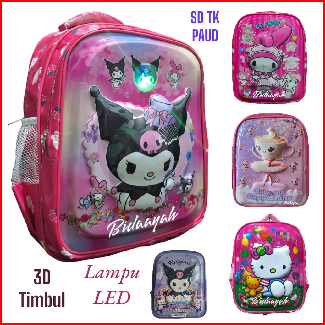 Kuromi Ballerina Tas Anak Sekolah Perempuan 3d Embos Timbul Glosy Lampu Led Ukuran Anak Sd Tk Paud Dua Ruang Beragam Kar