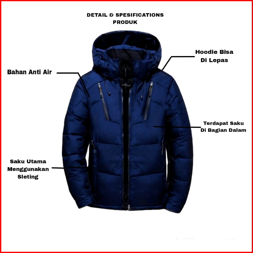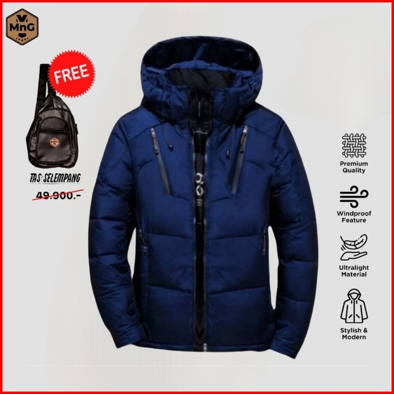 Mngstoreco Jaket Puffer Tebal Waterproof Navy Anti Air