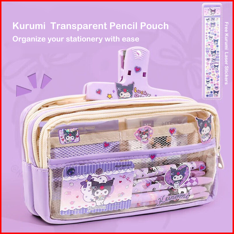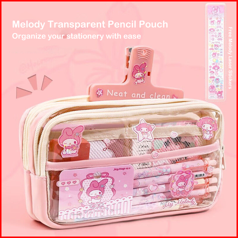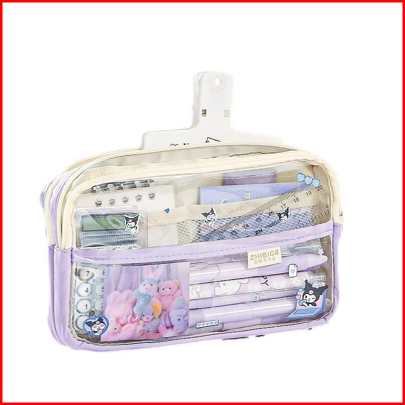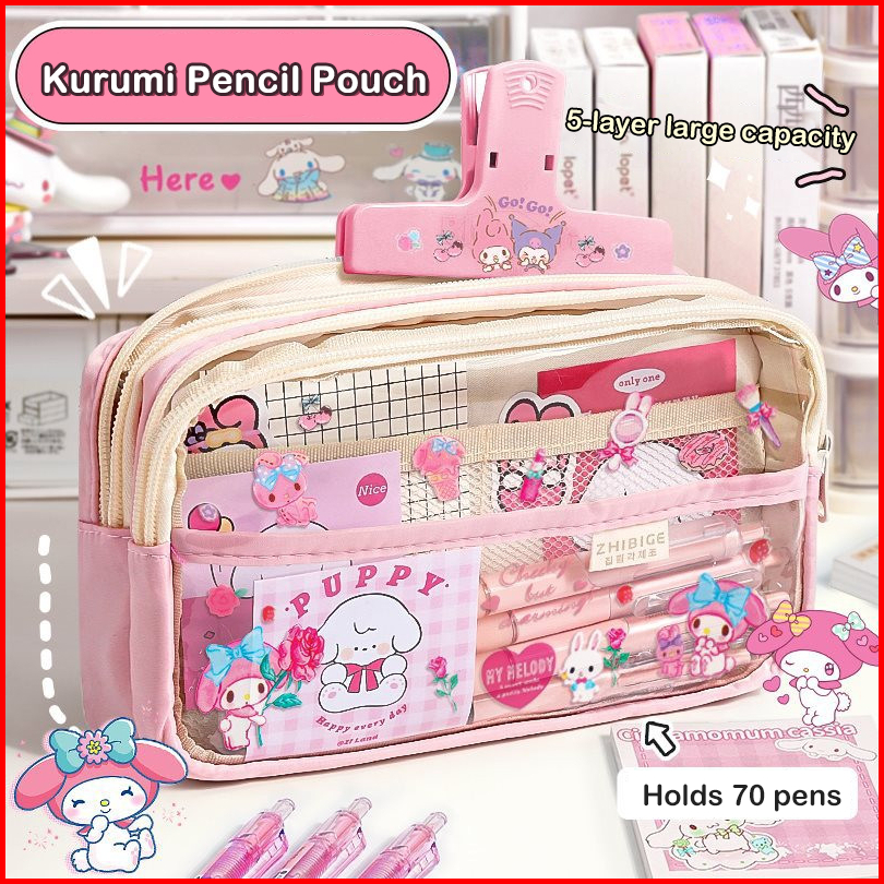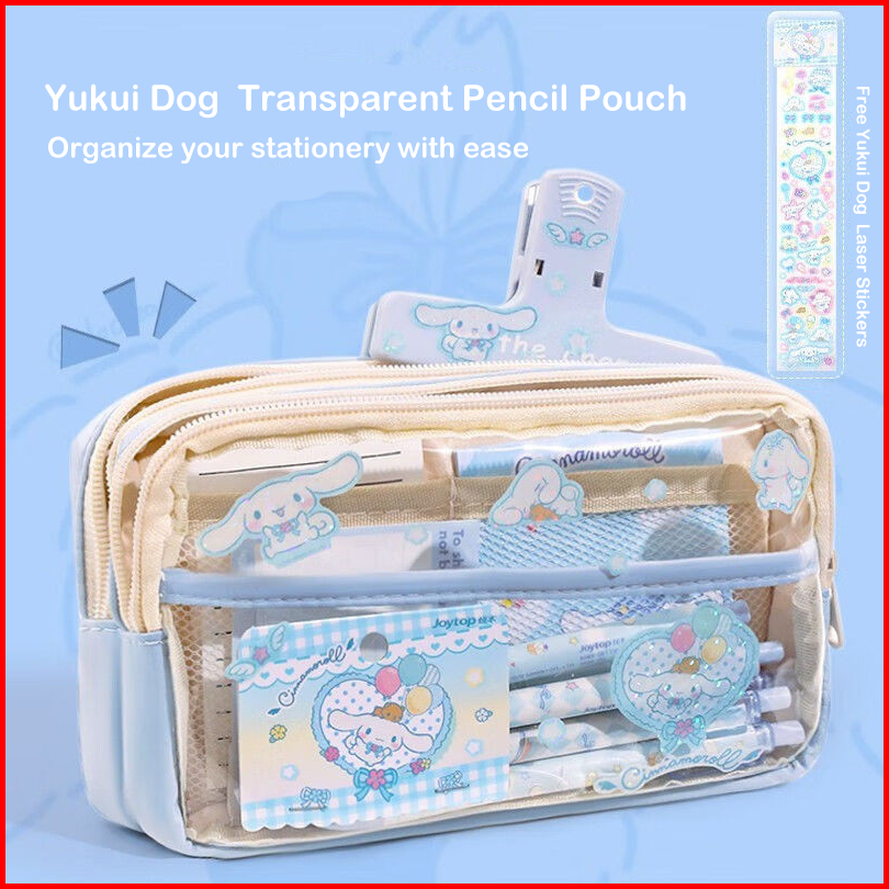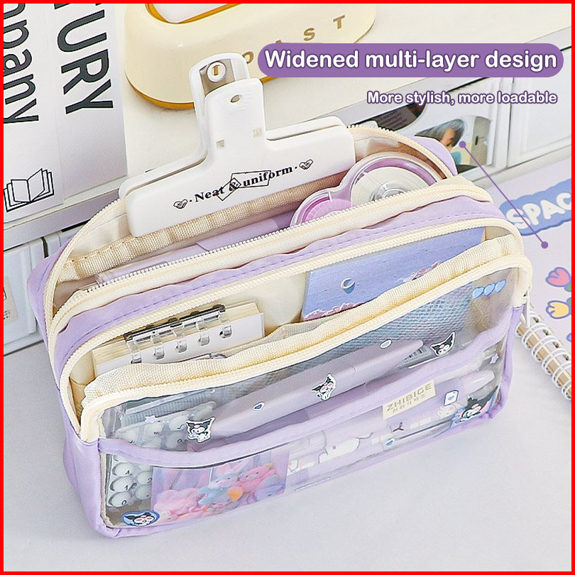 Kotak Pensil Transparan Aesthetic Pencil Case Large Tempat Pensil Pen Pouch Lucu Stationery Organizer