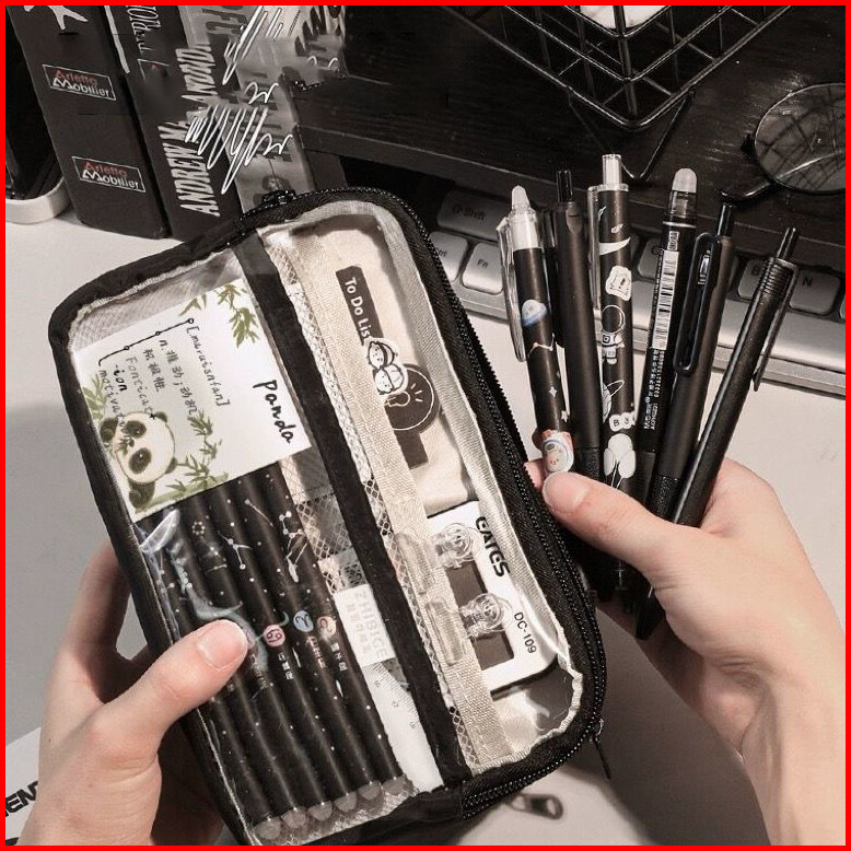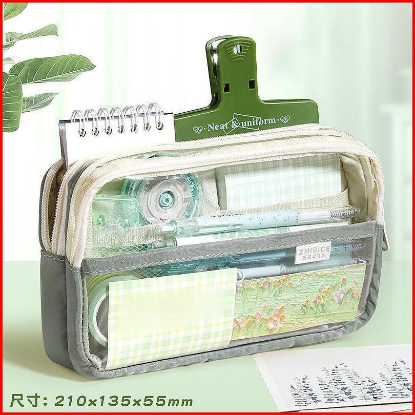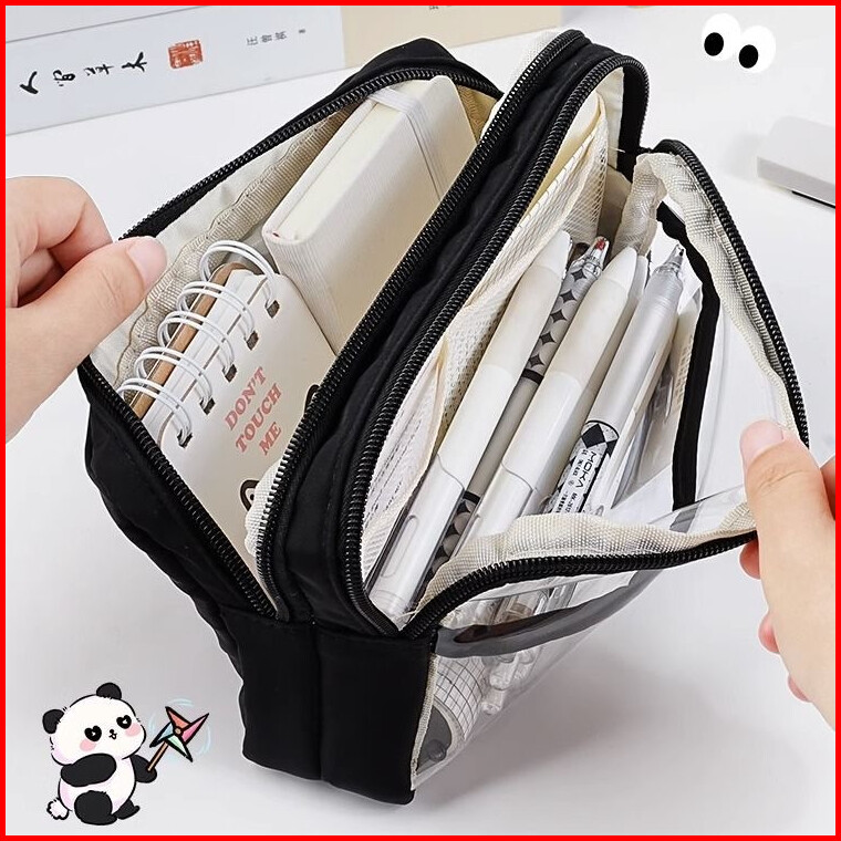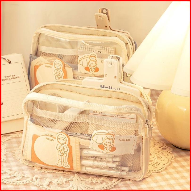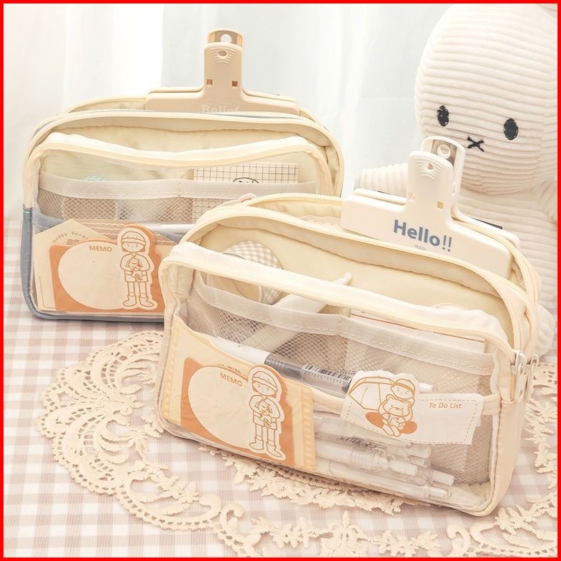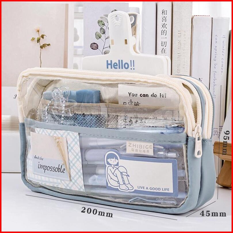 Kotak Pensil Large Capacity Kawaii Pencil Cases Dan Stationery Dual Zipper Dompet Pensil Pencil Case Casual Transparan P