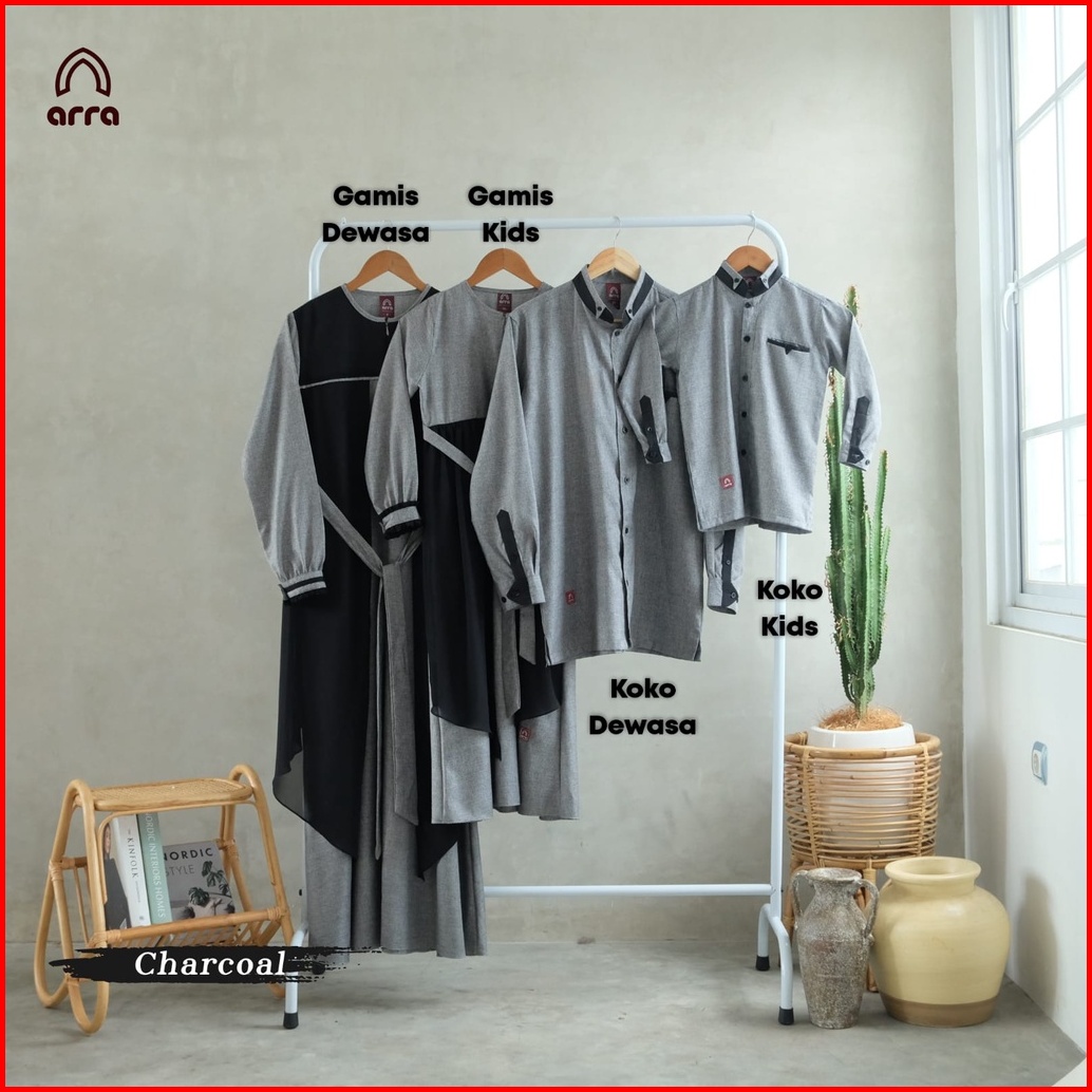 Sarimbit Keluarga 2025 Baju Lebaran 2025 Couple Keluarga Ayah Ibu Anak Arra Madina Charcoal