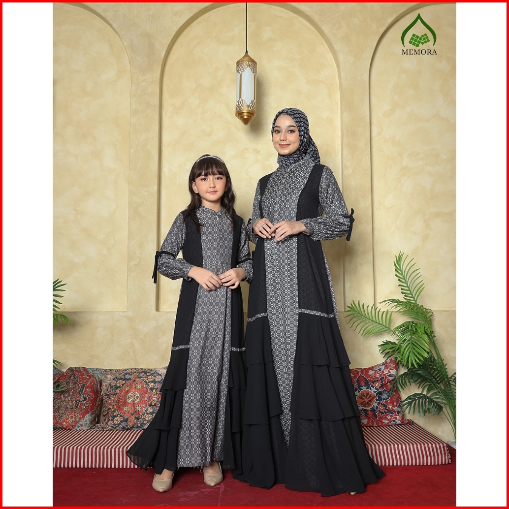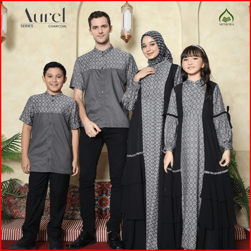 Baju Lebaran 2025 Couple Keluarga Series Aurel Charcoal By Memora - Baju Couple Keluarga Lebaran 2025 Original Amanah -