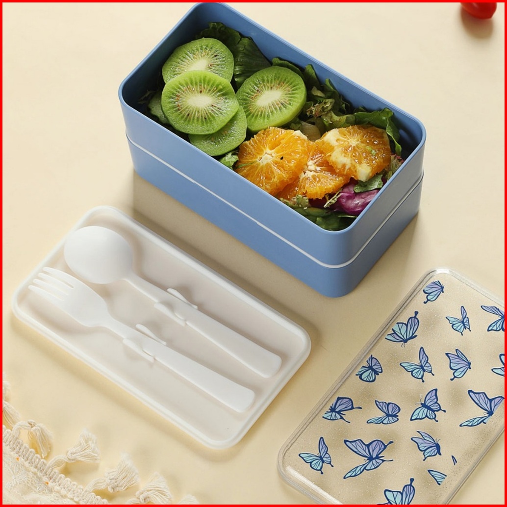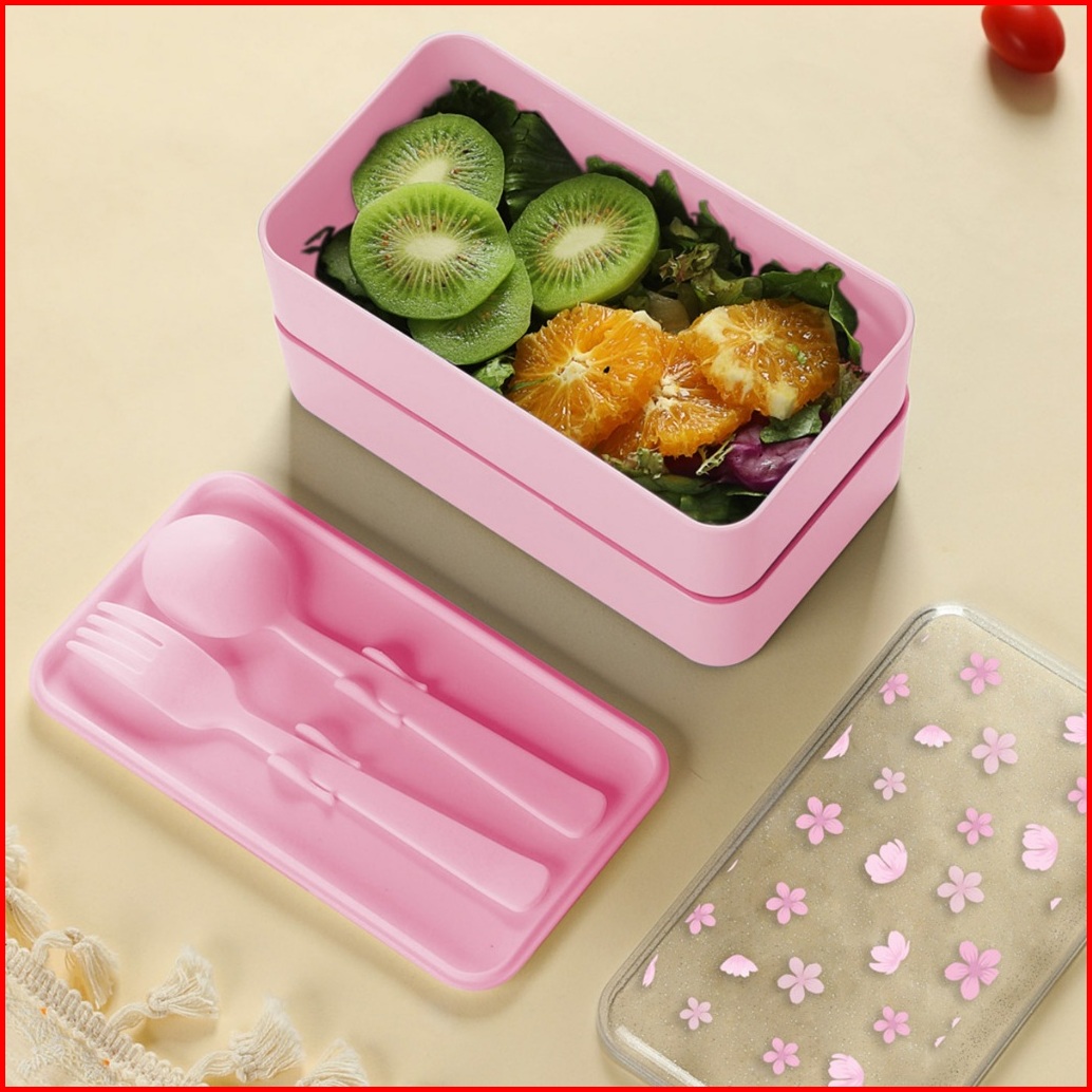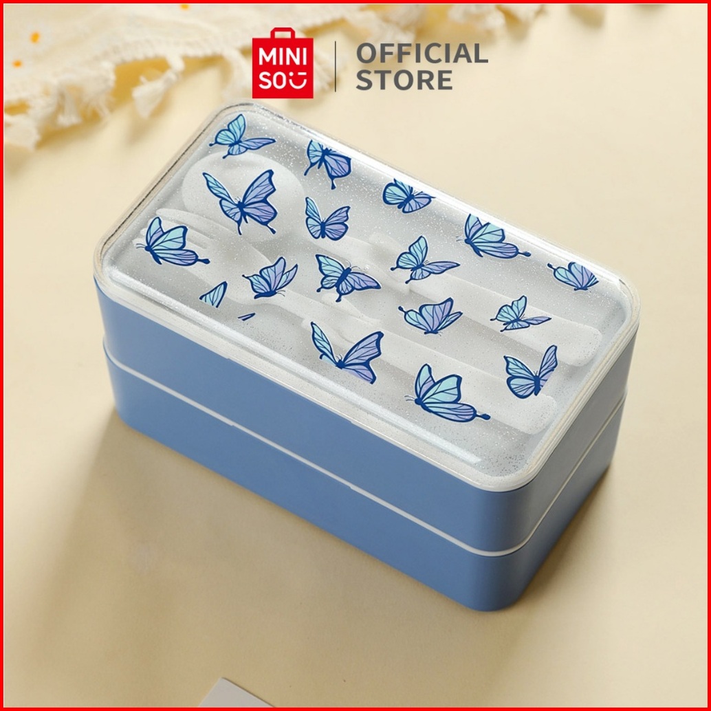 Miniso Lunch Box Set Kotak Makan 2 Lapisan 1000ml Kotak Bekal Free Sendok Dan Garpu Bento Box 1l